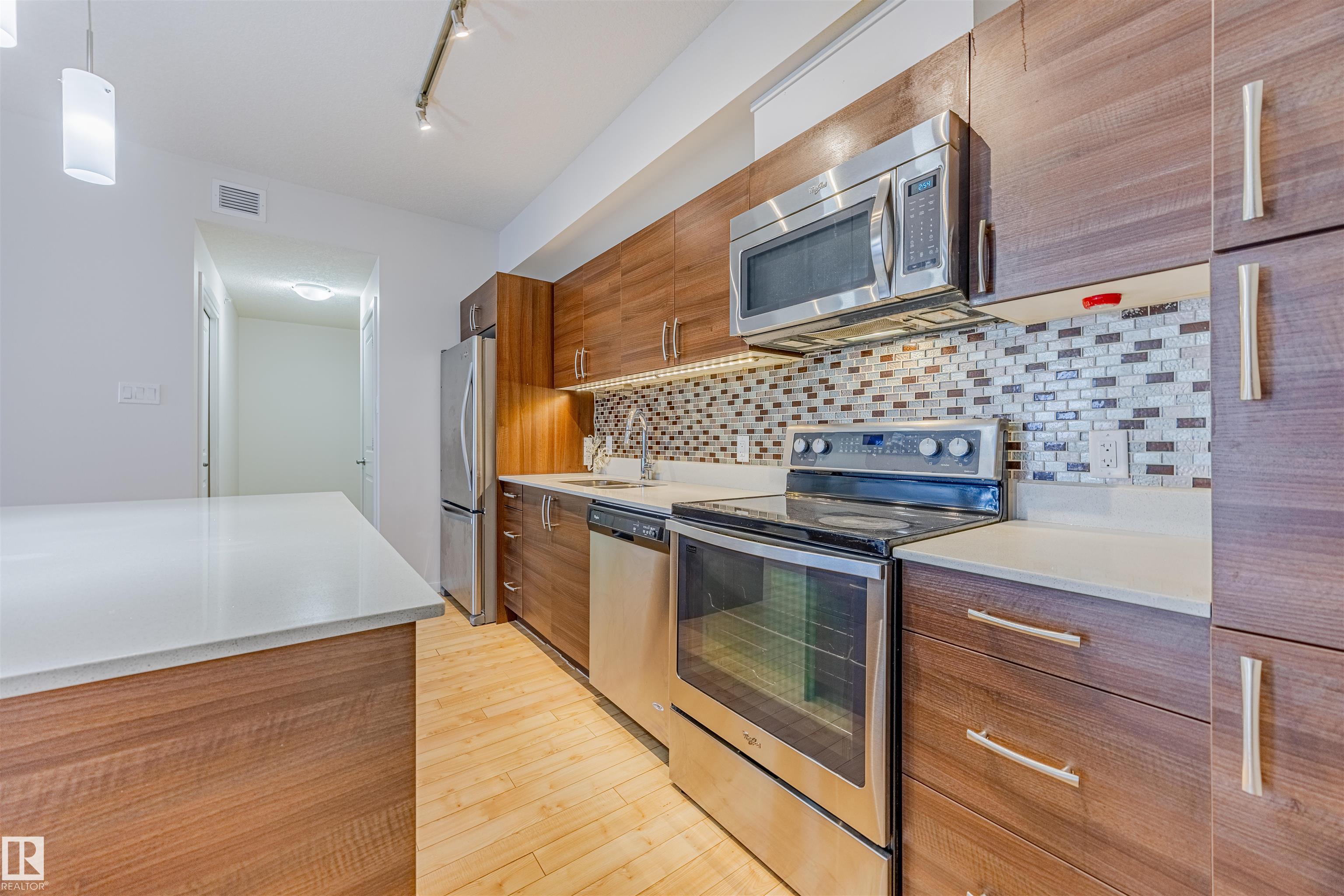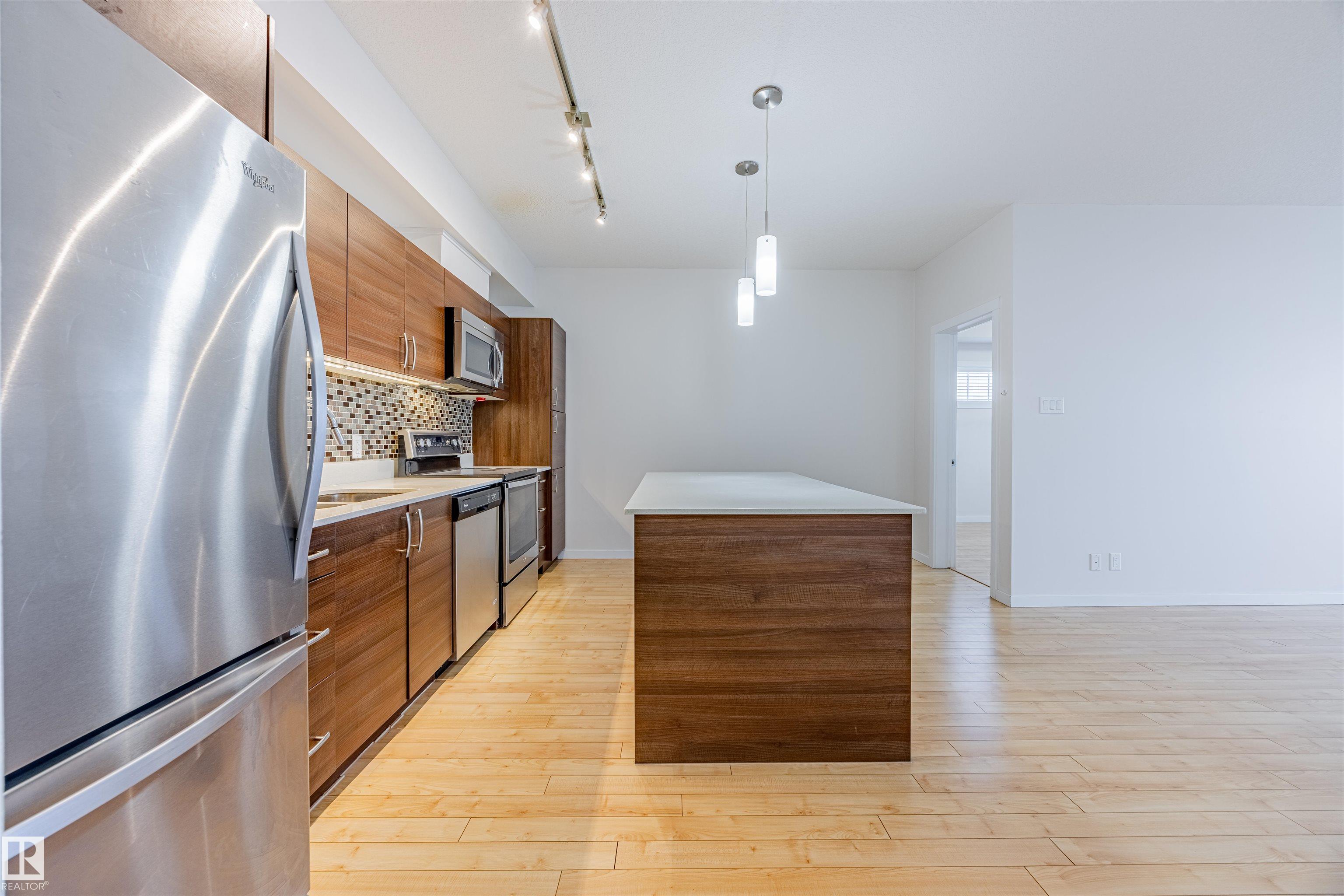 Are you looking for a well-maintained home in a solid condo complex? Here you go! This 2 bedroom 2 bath home features upgraded laminate flooring, a gorgeous quartz island w/ eating bar & TOP FLOOR views! This modern & freshly painted home features an open concept layout where you?ll see the well laid out kitchen with lots of storage space, quartz countertops, stainless appliances & the large island w/ space for 4 stools. Opening onto the great room, you?ll see this condo is made for sun lovers w/ SOUTH EXPOSURE windows galore! There is plenty of space to dine, entertain, enjoy & relax. The primary bedroom is very spacious with it?s own dual sided walk in closet & ensuite. The 2nd bedroom & main bath are on the opposite side which is great for privacy. There is also insuite laundry & a large patio ? the most amazing space for your garden & flowers to grow. Also included is a secure, underground parking stall. Steps to transit, shopping & Henday. Welcome HOME! Visit the REALTORŪ?s website for more details.
