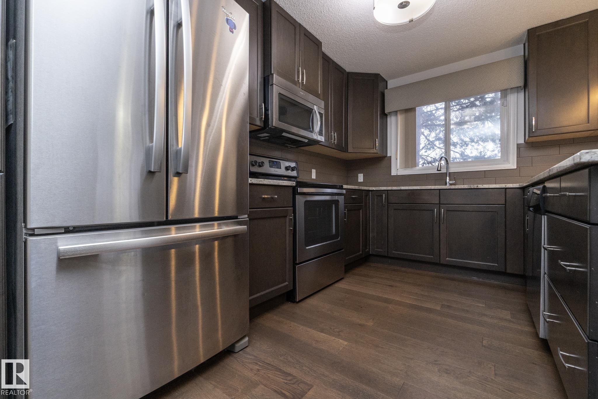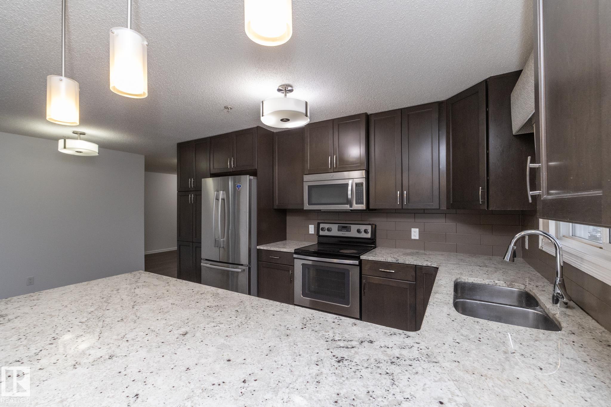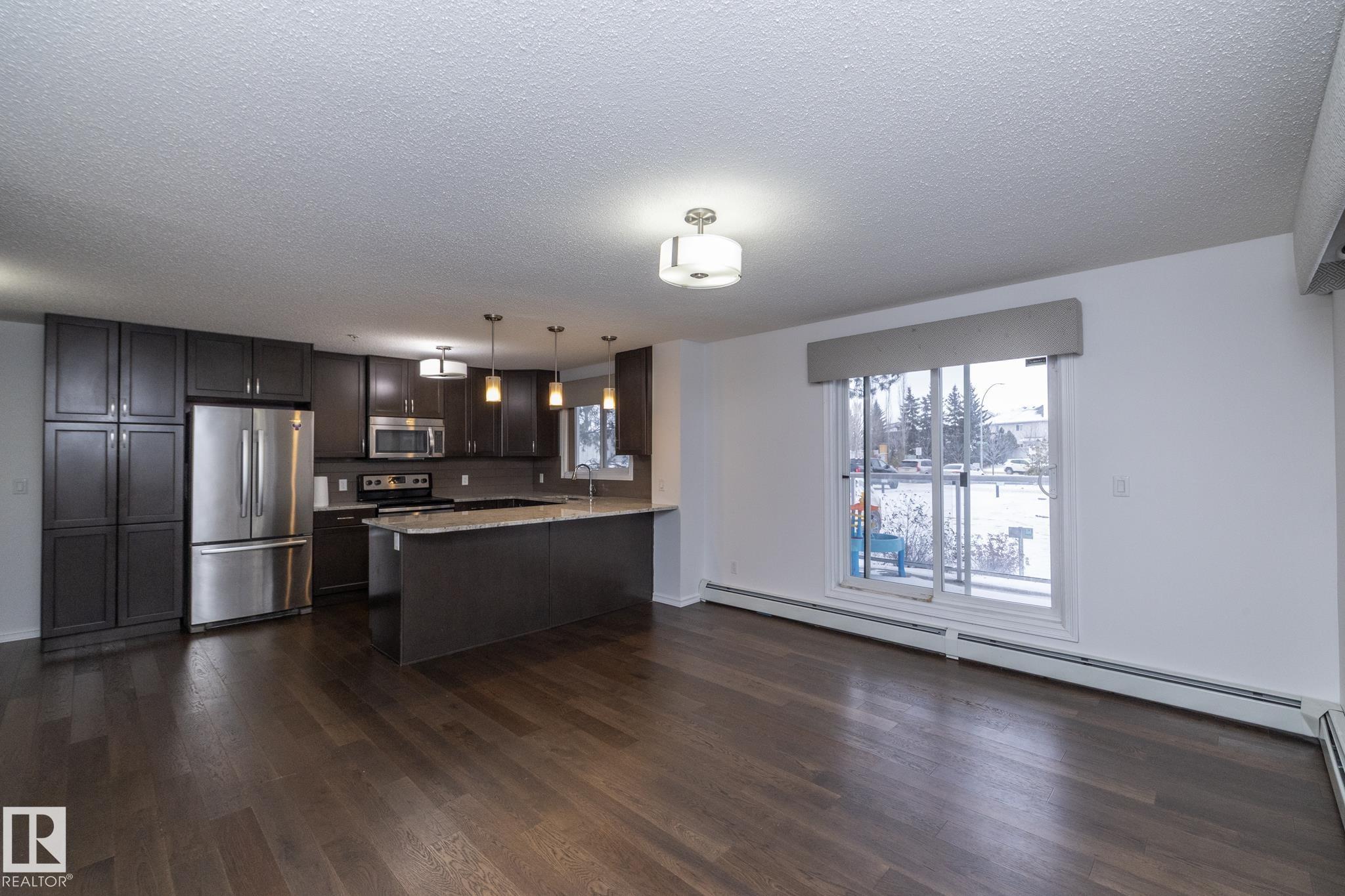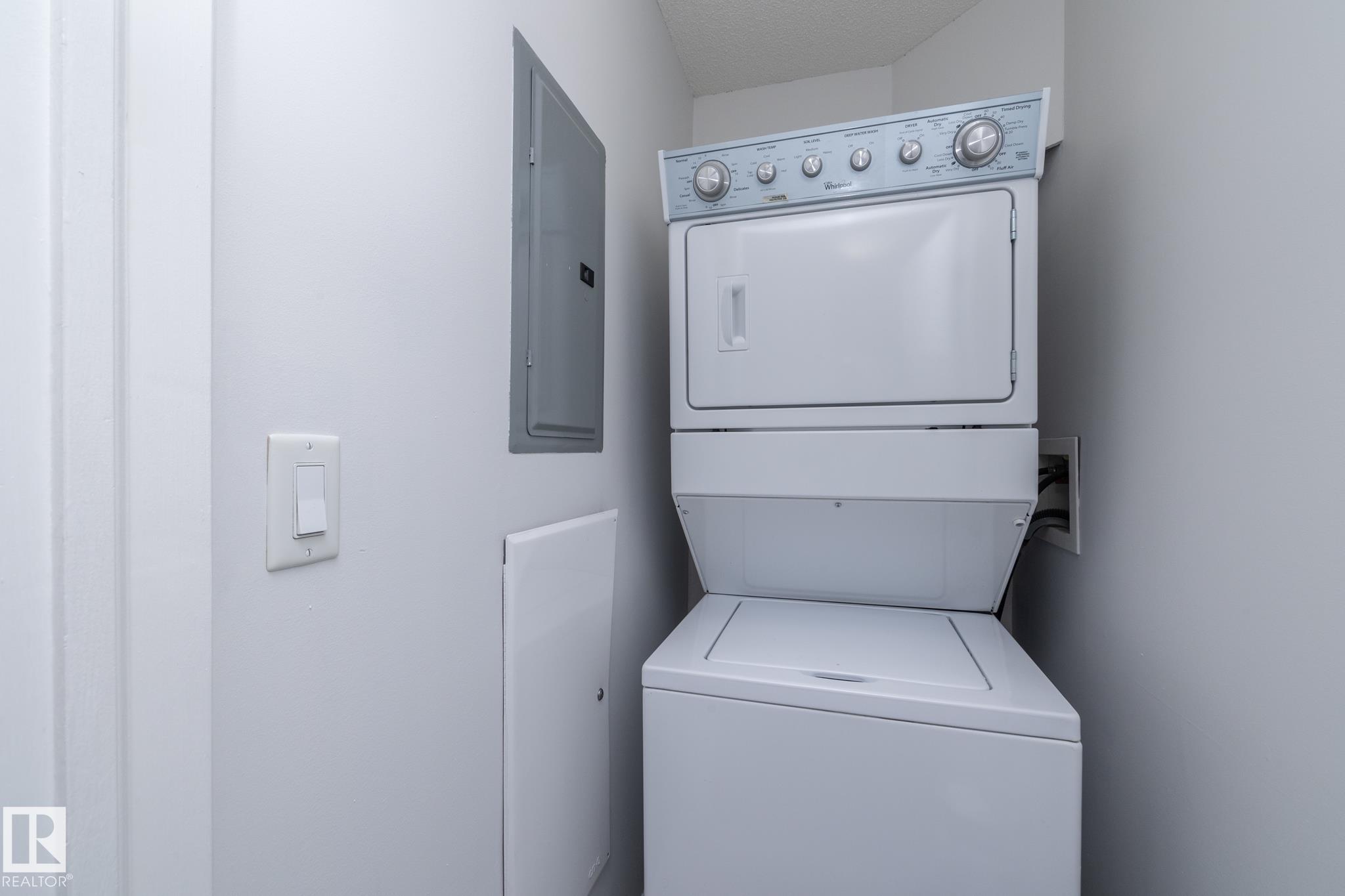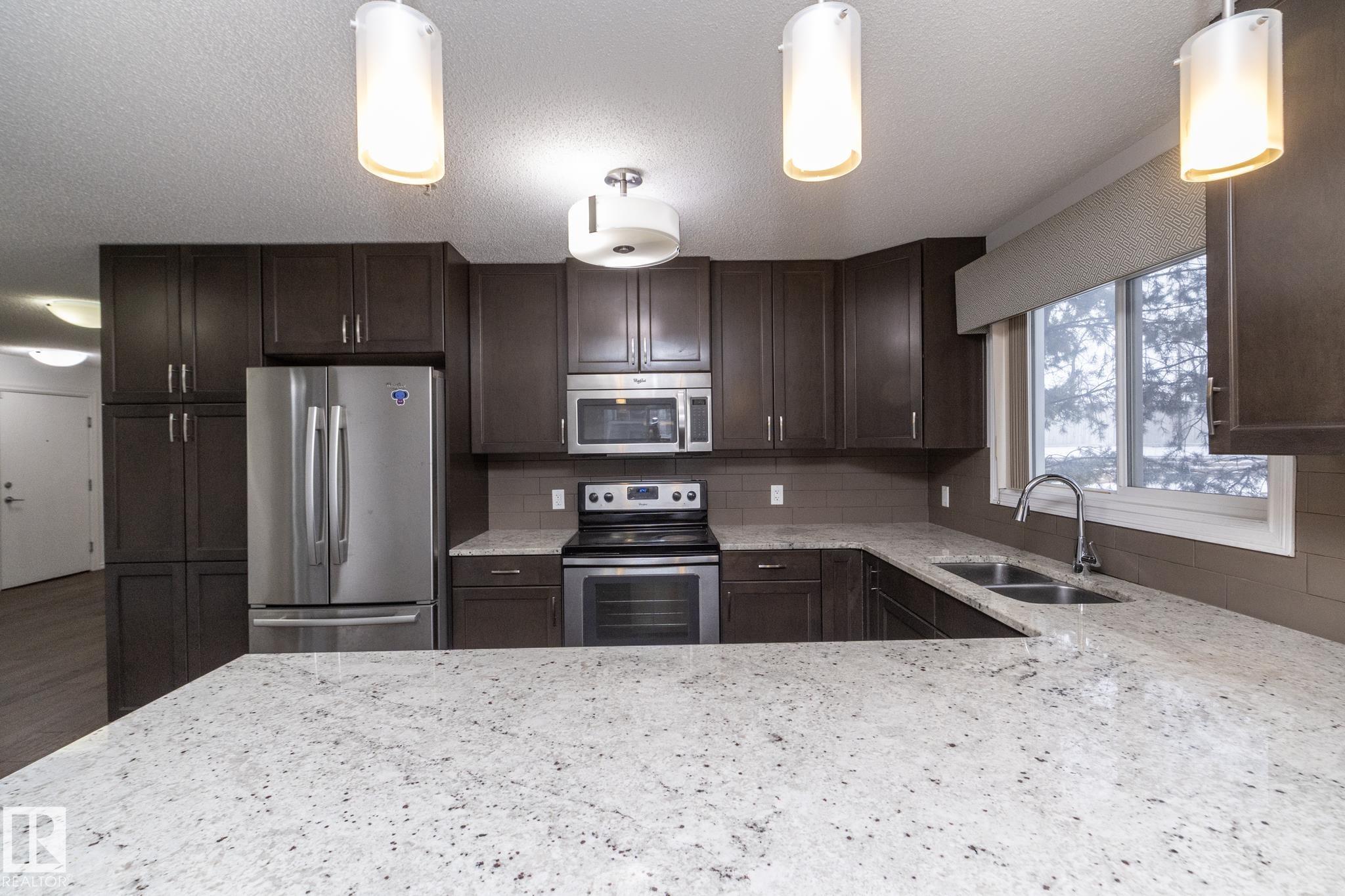 This former Landmark show home unit in Aspen Meadows apart of the community of Larkspur is a ground-floor corner end unit offering 2 bedrooms, 2 full bathrooms, and 935 sq ft of well-designed living space with ALL UTILITIES included in the condo fee. The end-unit layout provides added privacy and natural light throughout. The modern kitchen features granite countertops, stainless steel appliances, and ample counter space, flowing into a bright living area with access to a private patio with gas BBQ hookup. The spacious primary suite includes a walk-through closet and 3-piece ensuite, while the second bedroom and bathroom are well-separated for privacy. Additional highlights include hardwood flooring, in-suite laundry with built-in shelving, and two parking stalls?one heated underground with storage plus one surface stall. The building offers an exercise room, meeting room, and visitor parking, all close to parks, trails, shopping, transit, and with easy Whitemud and Henday access.