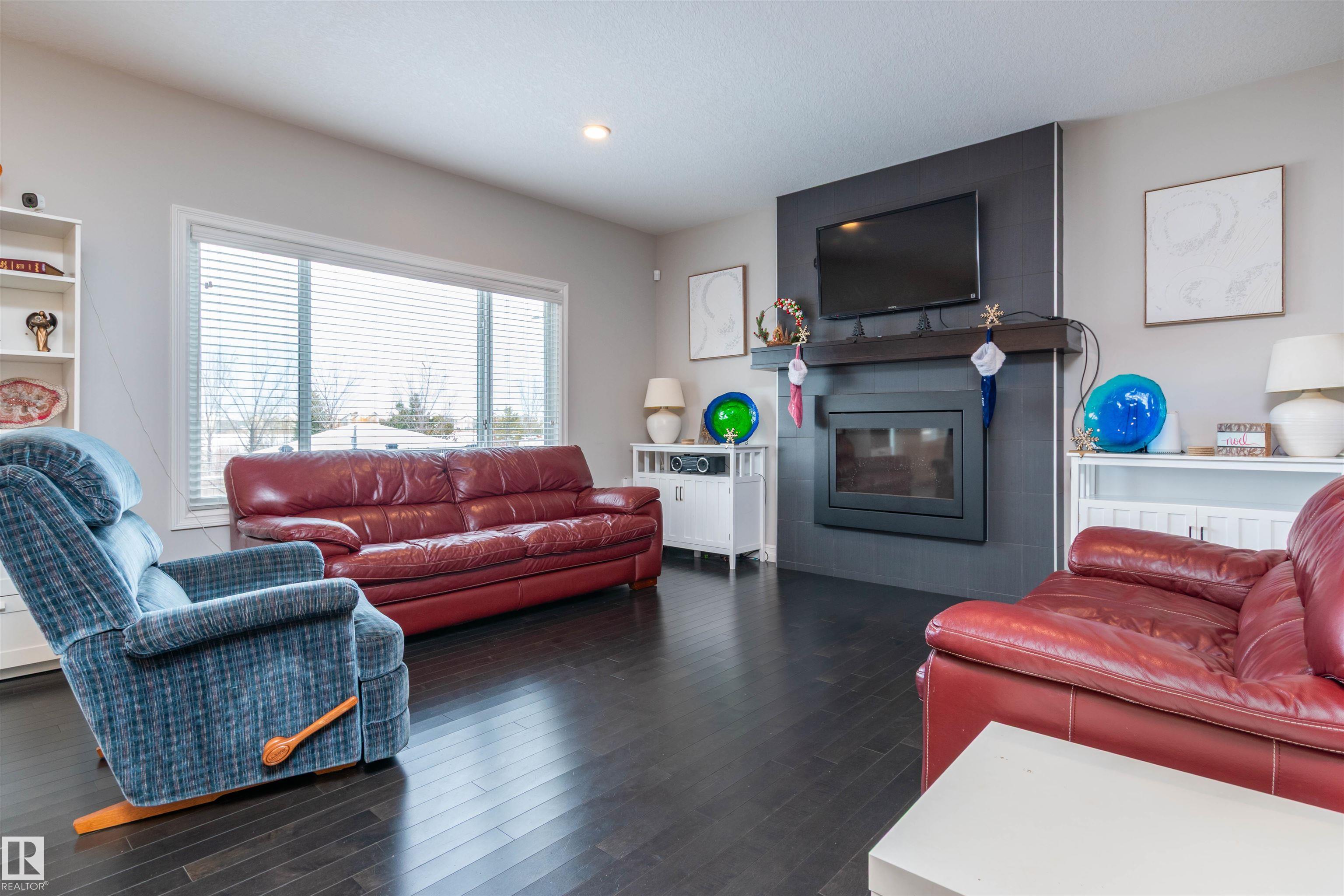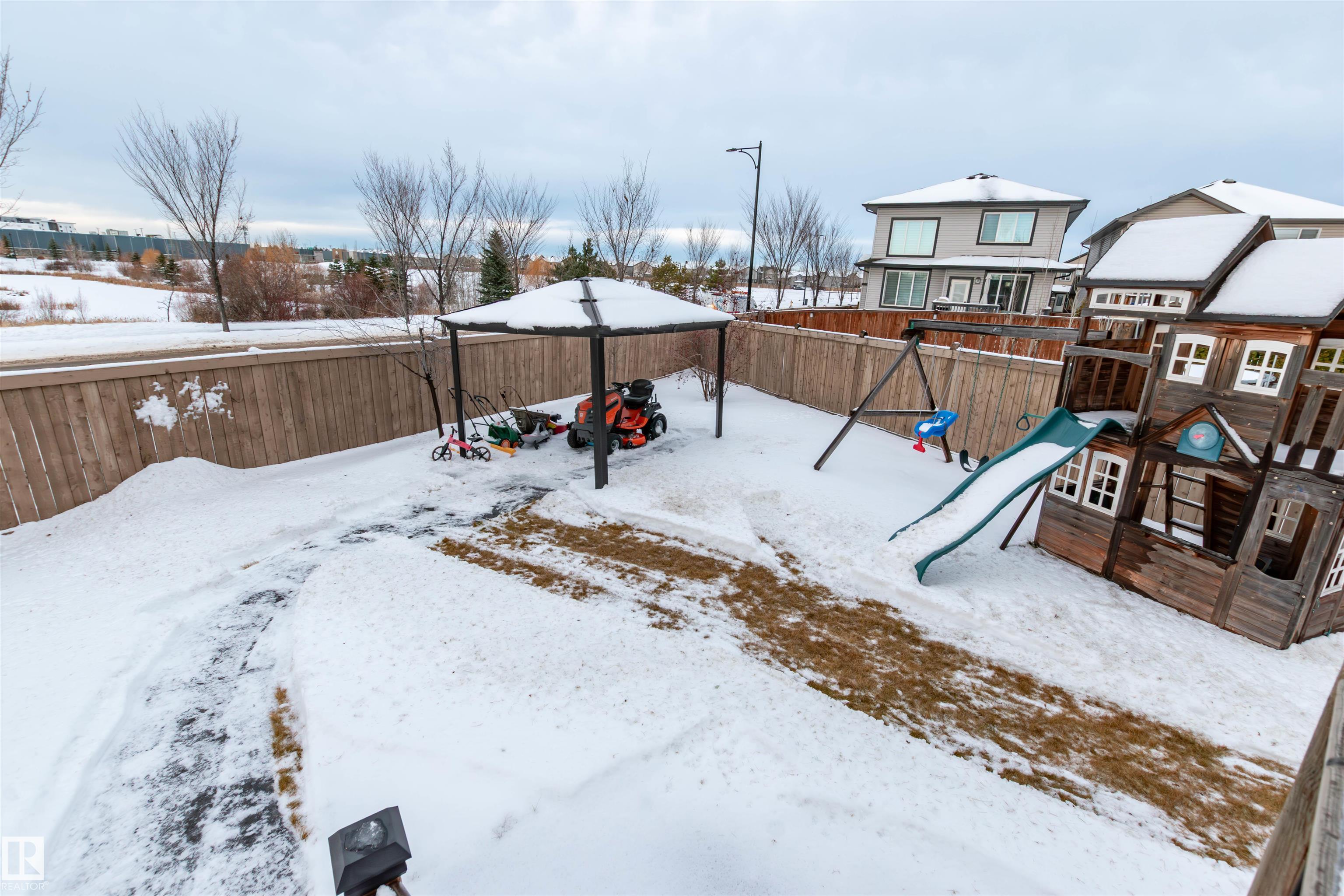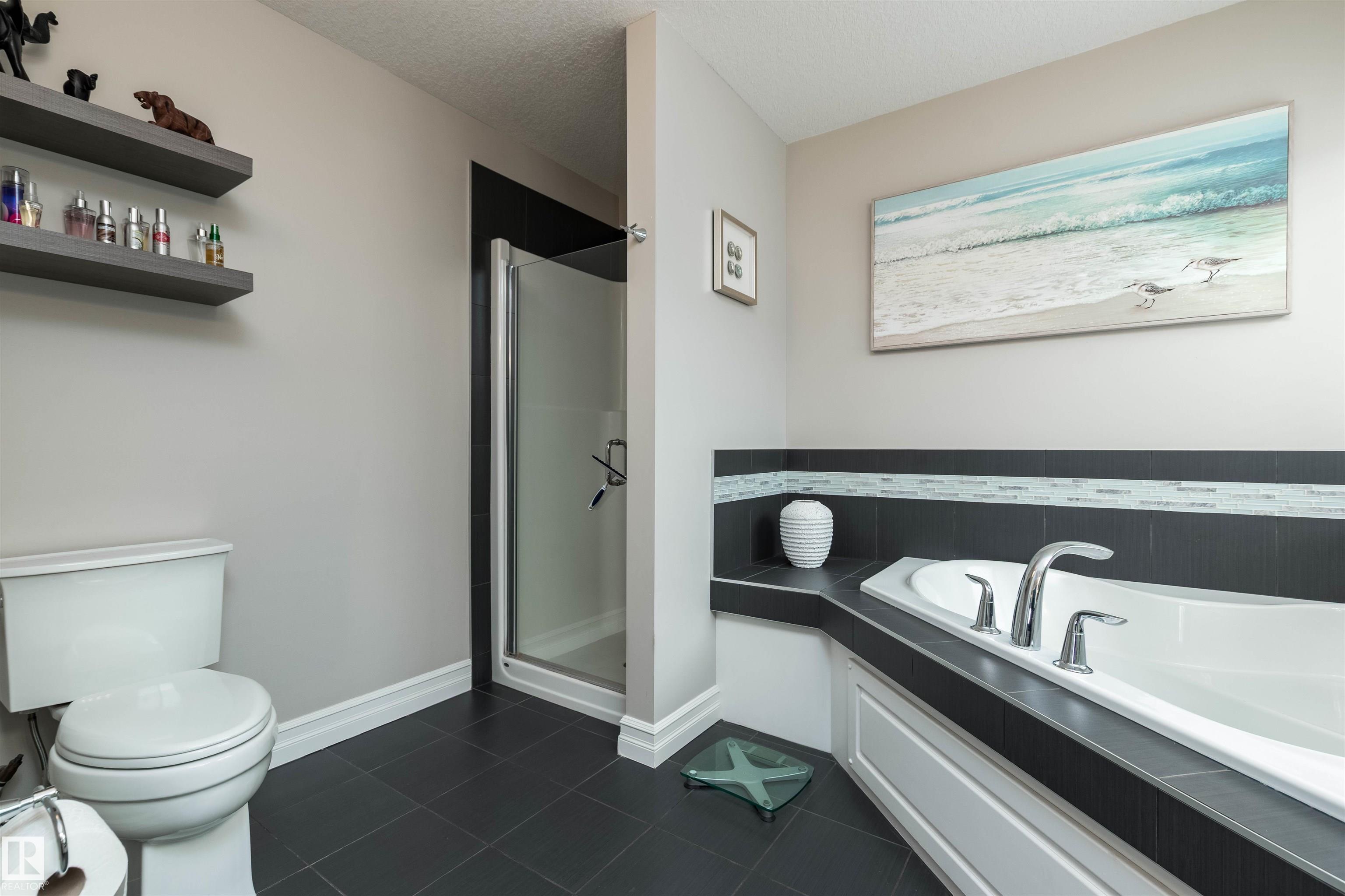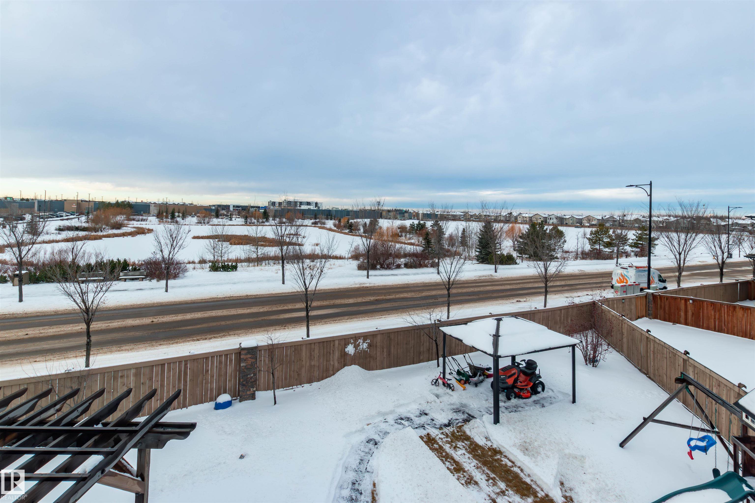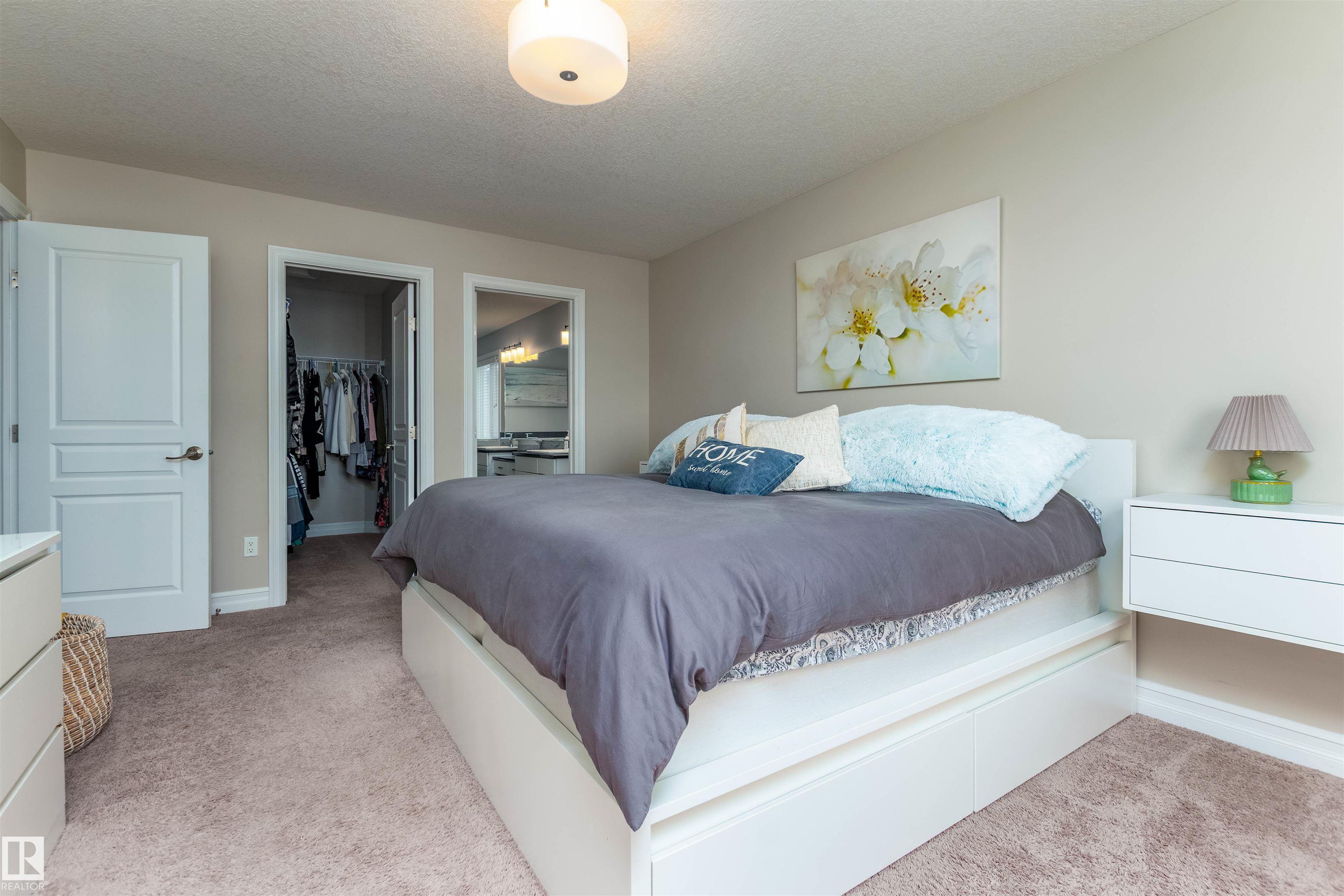 Situated on a HUGE PIE LOT is this GORGEOUS family home! Fronting the pond and trees in one of north Edmonton's most desirable communities! Open concept design offering nearly 2400 sq ft plus a FULLY FINISHED basement! Loaded with natural light and featuring a stunning kitchen with an abundance of custom cabinetry, stainless steel appliances, walk-through pantry and beautiful countertops. Large windows, generous dining area and a spacious living room with hardwood floors & attractive gas fireplace. Main floor flex room/office and powder room. Upstairs is a big Bonus Room, 3 bedrooms, laundry room and a 4 piece bathroom. Vaulted ceilings in the Primary Bedroom, walk-in closet and a LUXURIOUS "SPA-LIKE" ENSUITE! The basement boasts a massive family room, wet bar, 4th bedroom, 4 piece bathroom, utility room & storage space. BEAUTIFUL BACKYARD! Two-tiered deck and stamped concrete patio. Central AC, hot water on demand, and a HEATED GARAGE! Outstanding value!! Visit REALTORŪ website for more information.