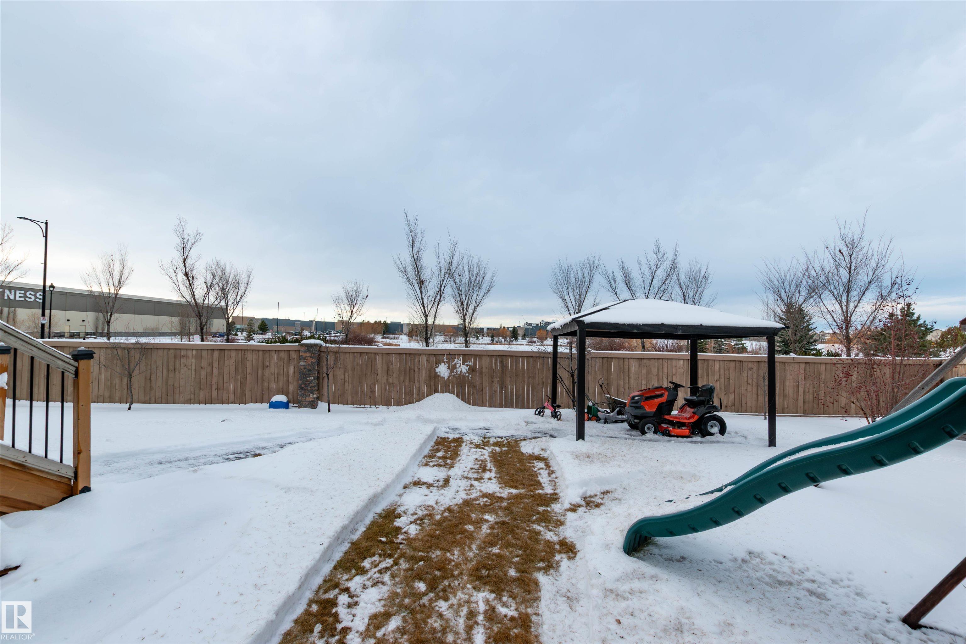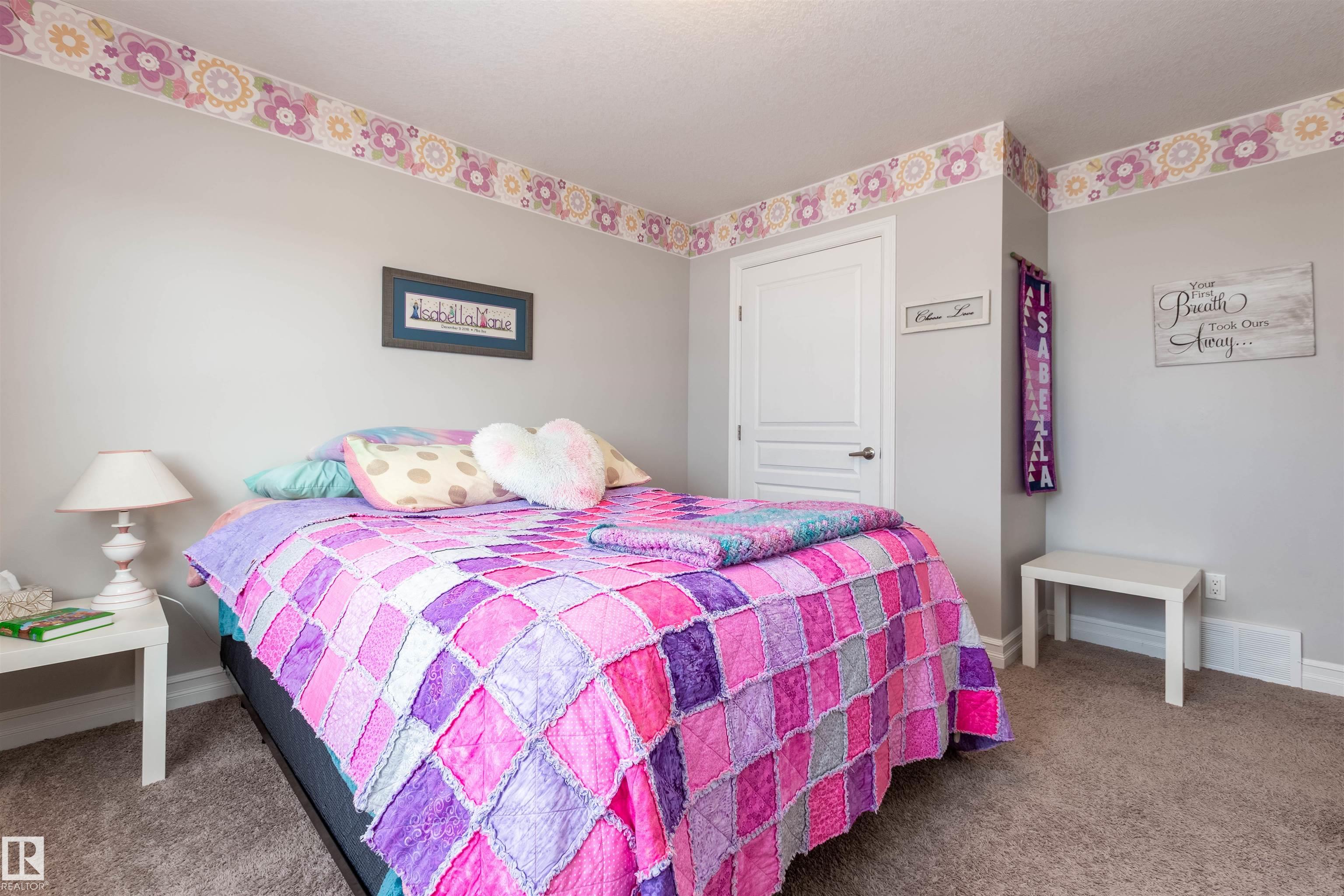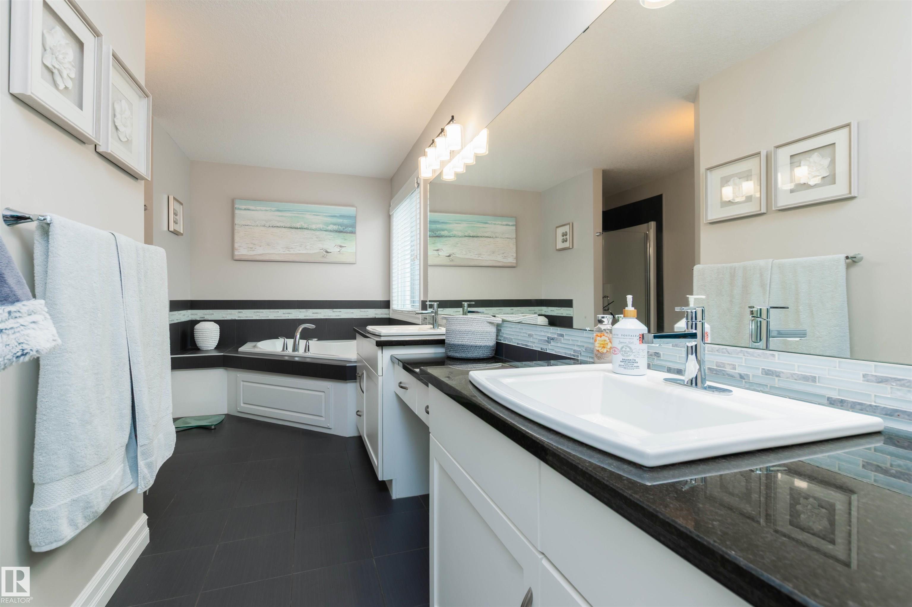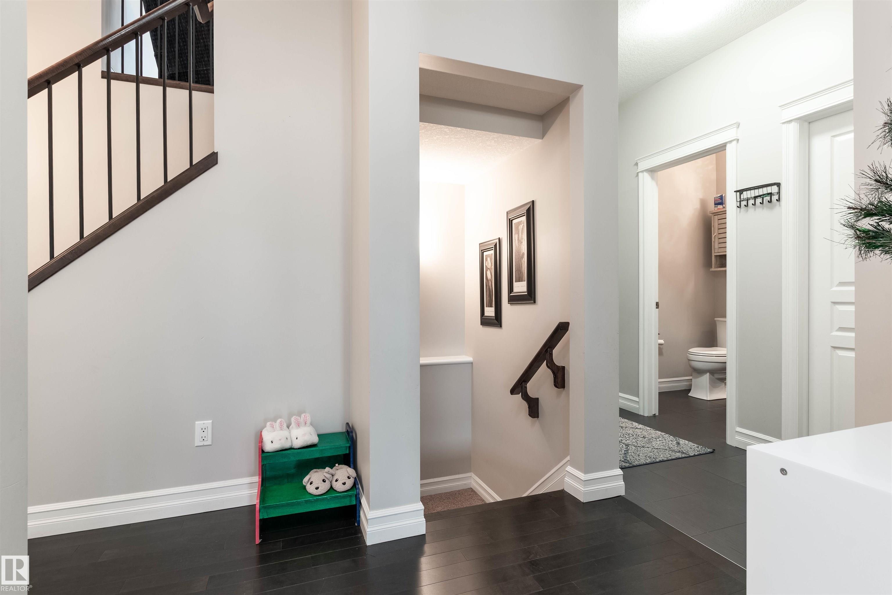 Situated on a HUGE PIE LOT is this GORGEOUS family home! Fronting the pond and trees in one of north Edmonton's most desirable communities! Open concept design offering nearly 2400 sq ft plus a FULLY FINISHED basement! Loaded with natural light and featuring a stunning kitchen with an abundance of custom cabinetry, stainless steel appliances, walk-through pantry and beautiful countertops. Large windows, generous dining area and a spacious living room with hardwood floors & attractive gas fireplace. Main floor flex room/office and powder room. Upstairs is a big Bonus Room, 3 bedrooms, laundry room and a 4 piece bathroom. Vaulted ceilings in the Primary Bedroom, walk-in closet and a LUXURIOUS "SPA-LIKE" ENSUITE! The basement boasts a massive family room, wet bar, 4th bedroom, 4 piece bathroom, utility room & storage space. BEAUTIFUL BACKYARD! Two-tiered deck and stamped concrete patio. Central AC, hot water on demand, and a HEATED GARAGE! Outstanding value!! Visit REALTORŪ website for more information.