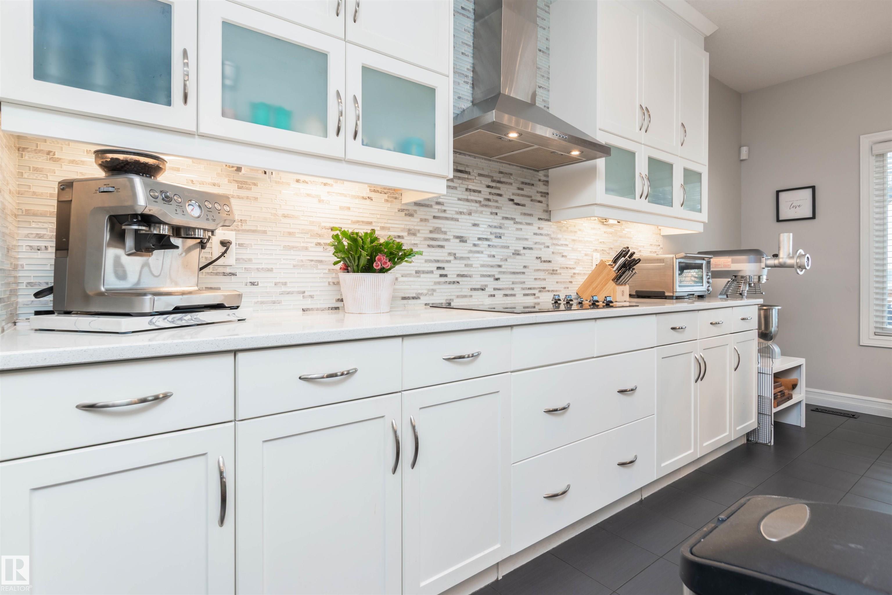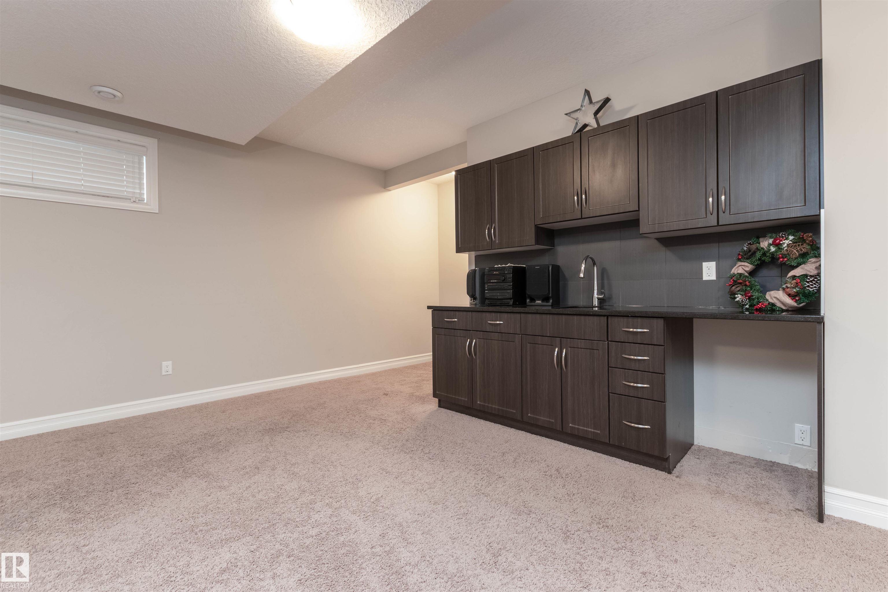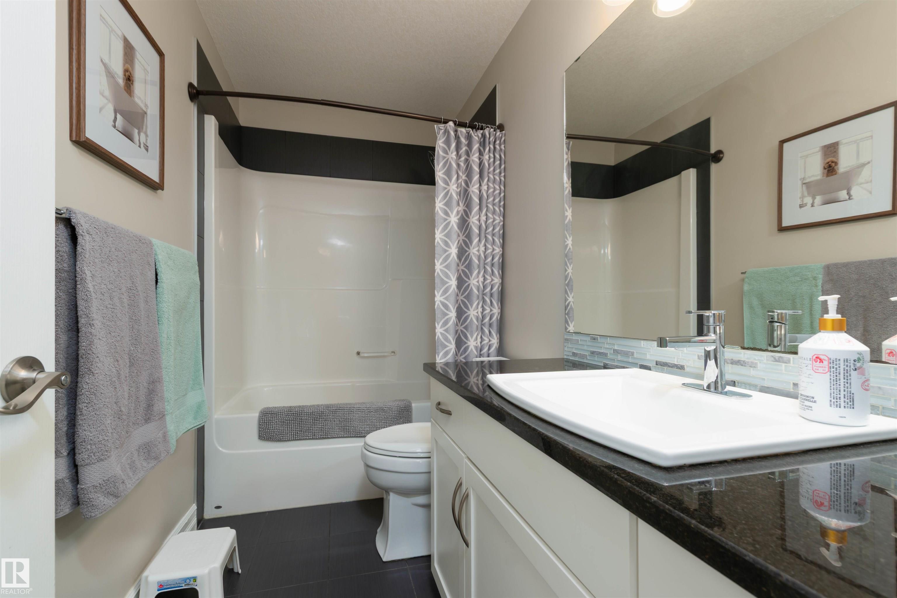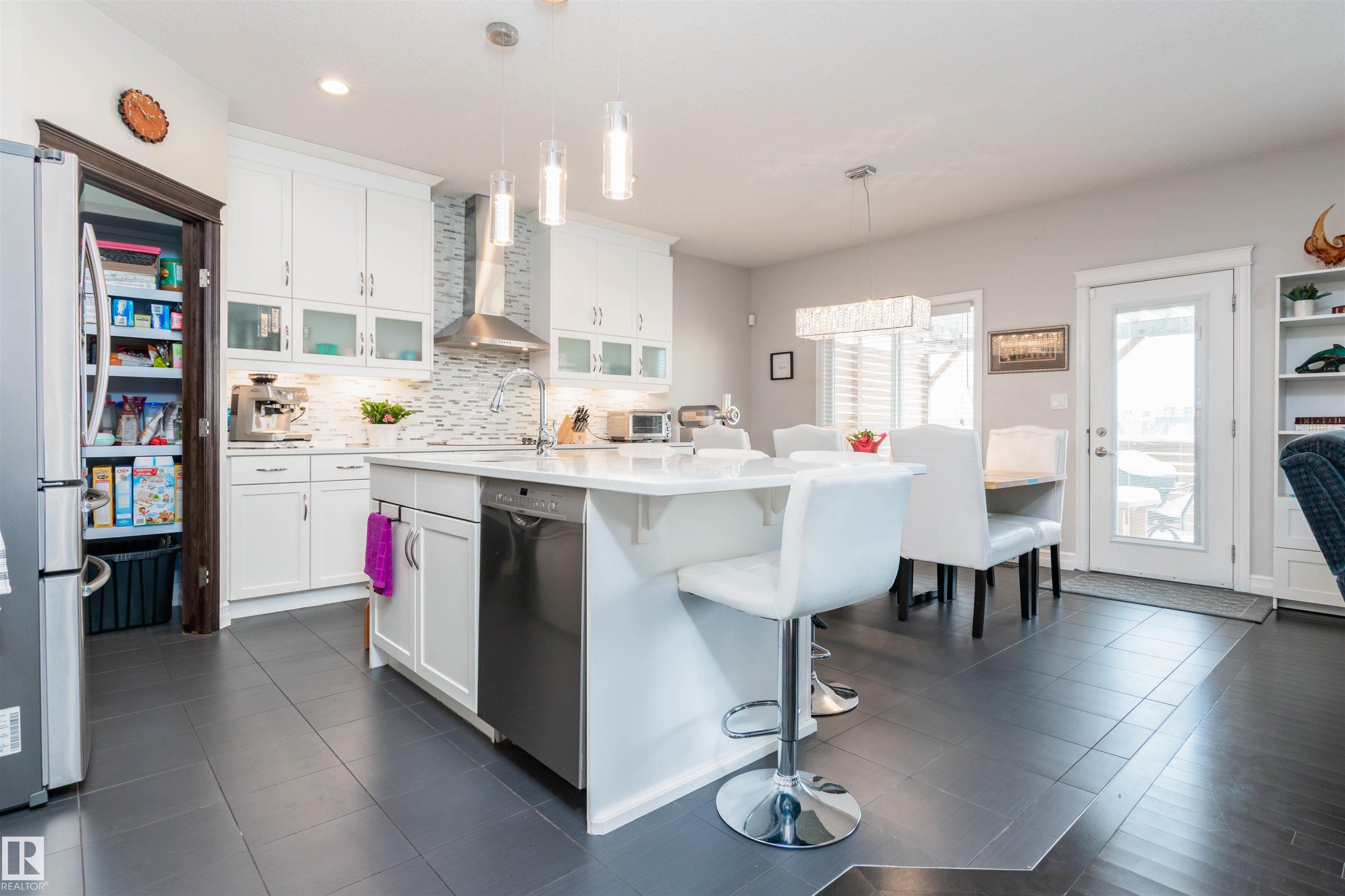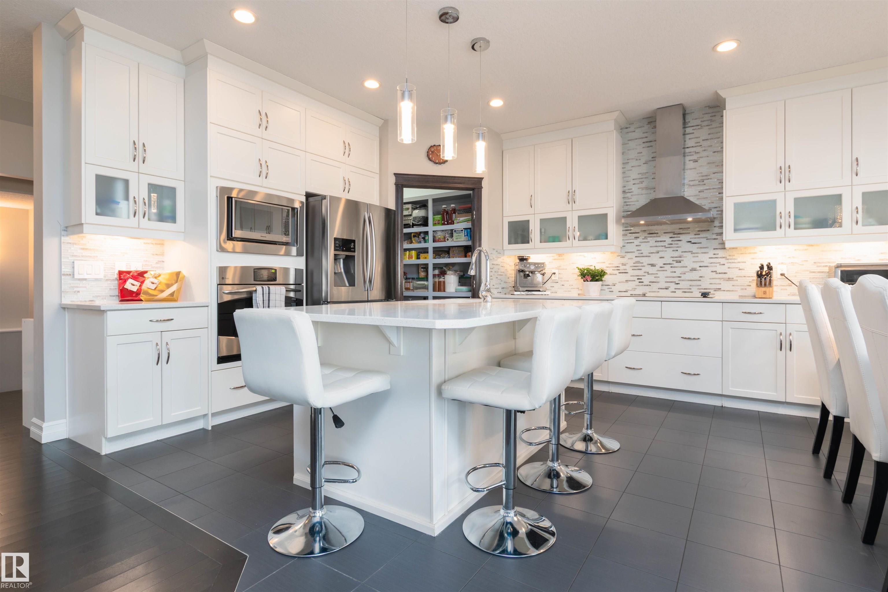 Situated on a HUGE PIE LOT is this GORGEOUS family home! Fronting the pond and trees in one of north Edmonton's most desirable communities! Open concept design offering nearly 2400 sq ft plus a FULLY FINISHED basement! Loaded with natural light and featuring a stunning kitchen with an abundance of custom cabinetry, stainless steel appliances, walk-through pantry and beautiful countertops. Large windows, generous dining area and a spacious living room with hardwood floors & attractive gas fireplace. Main floor flex room/office and powder room. Upstairs is a big Bonus Room, 3 bedrooms, laundry room and a 4 piece bathroom. Vaulted ceilings in the Primary Bedroom, walk-in closet and a LUXURIOUS "SPA-LIKE" ENSUITE! The basement boasts a massive family room, wet bar, 4th bedroom, 4 piece bathroom, utility room & storage space. BEAUTIFUL BACKYARD! Two-tiered deck and stamped concrete patio. Central AC, hot water on demand, and a HEATED GARAGE! Outstanding value!! Visit REALTORŪ website for more information.