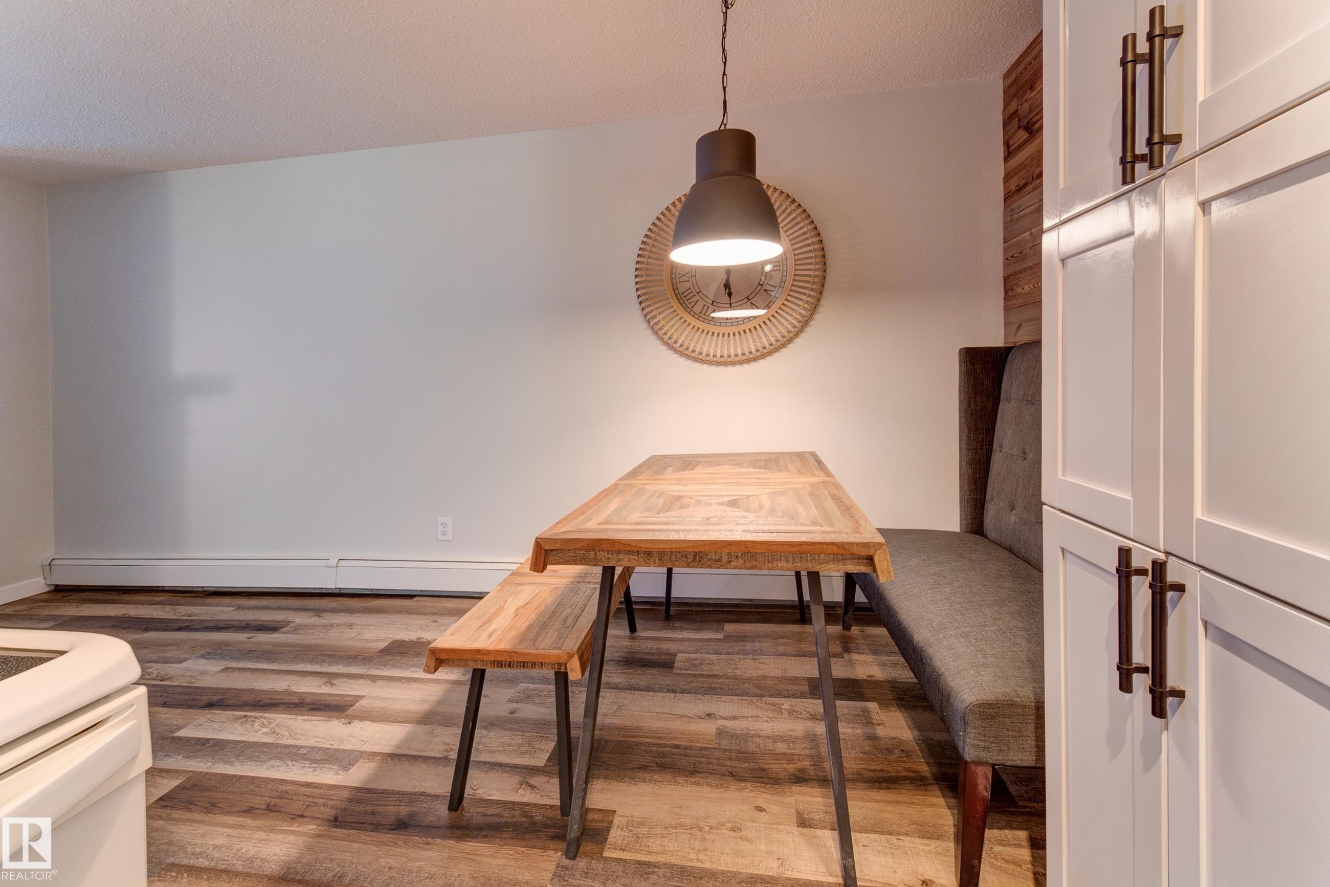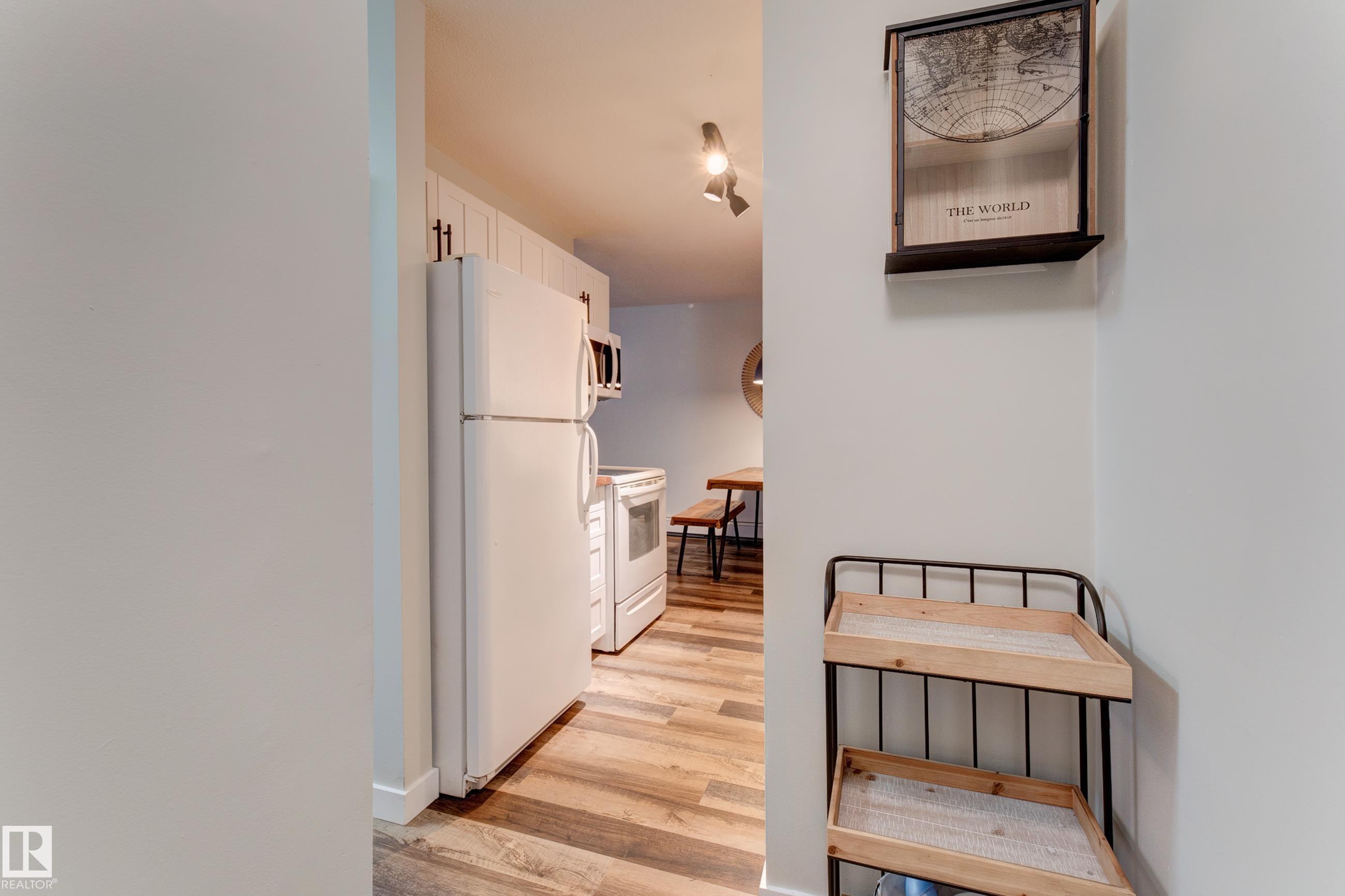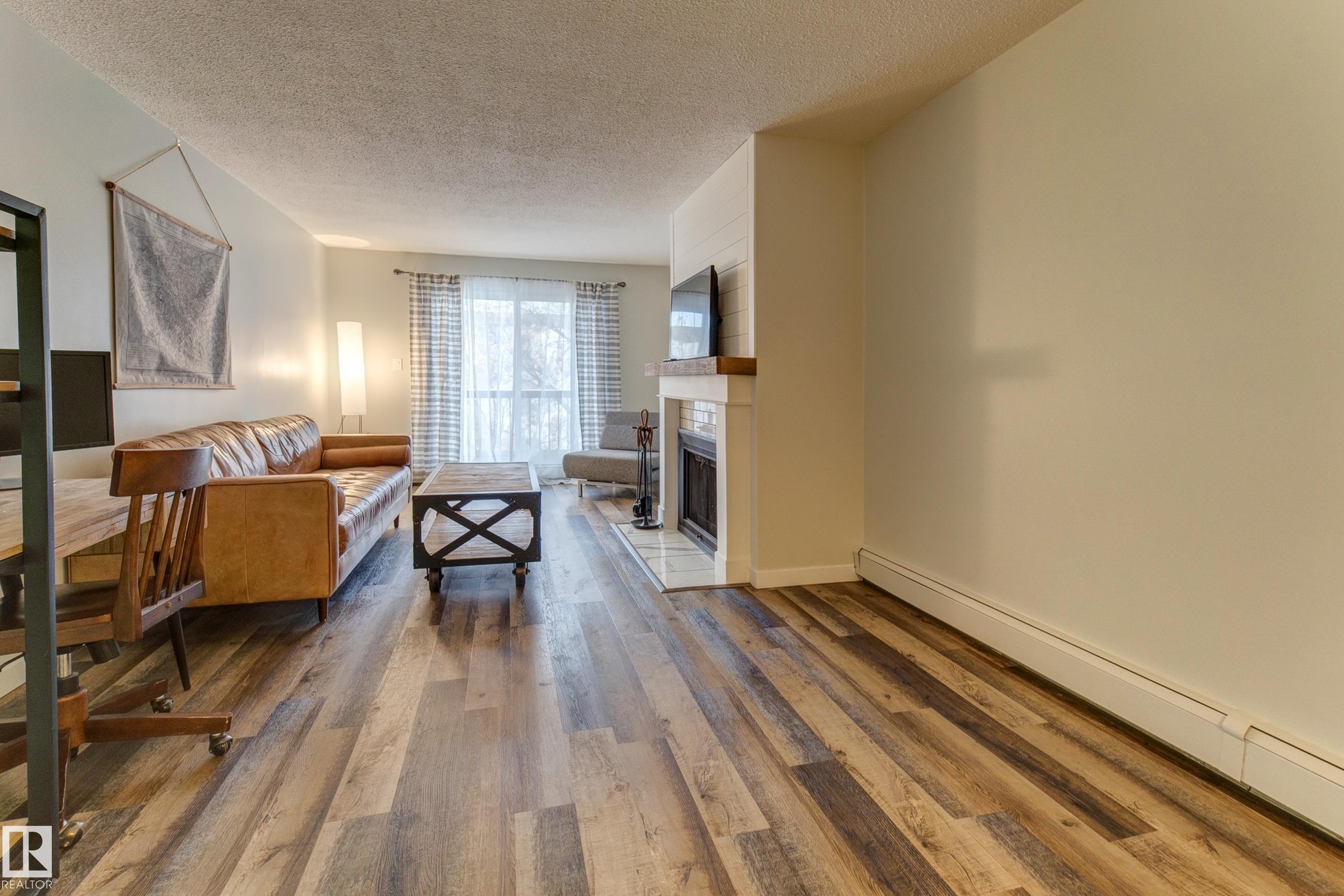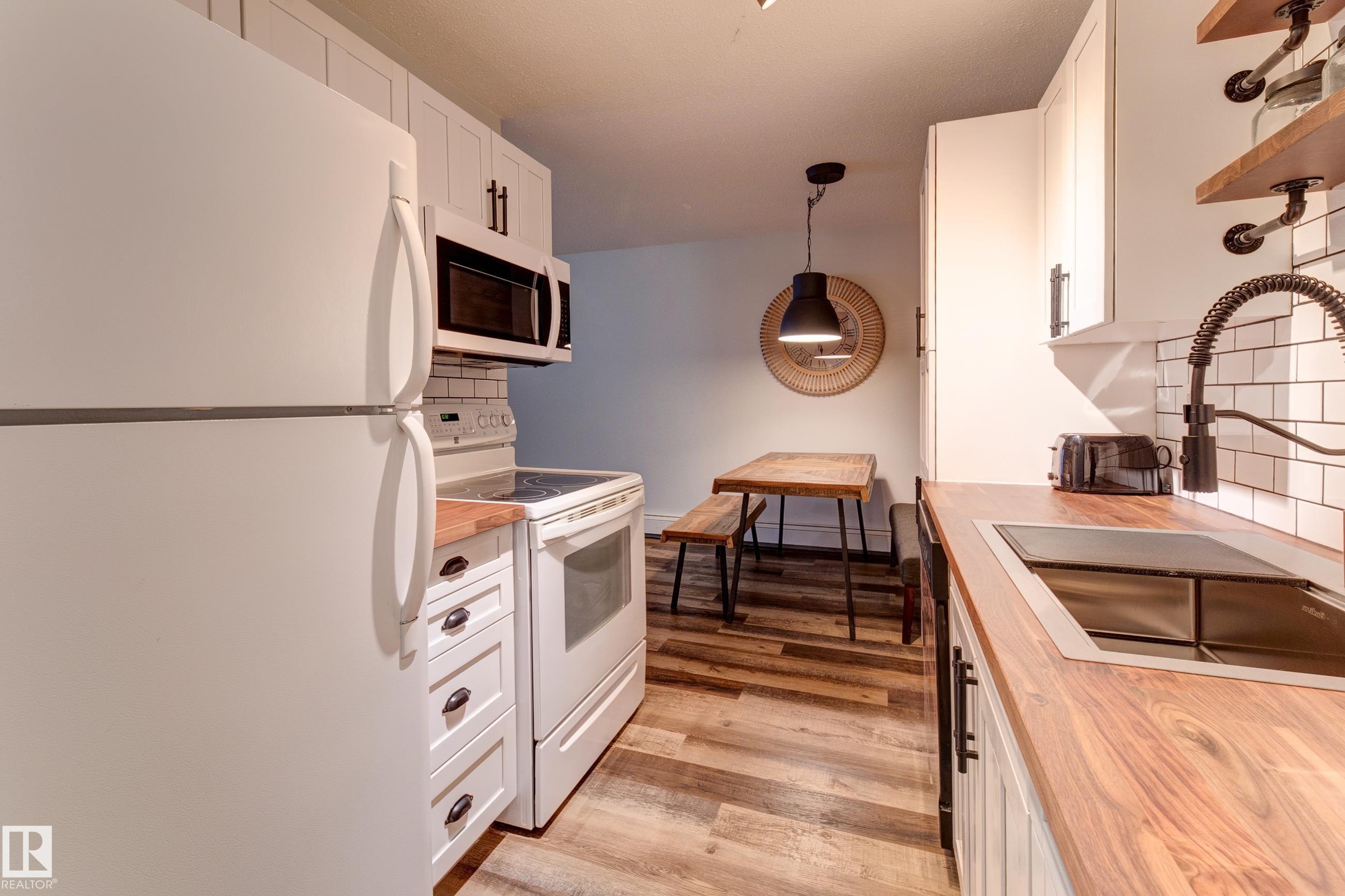 Attention savvy investors & buyers, looking for a property that can cash flow? Consider this FULLY RENOVATED, FULLY FURNISHED top floor, one bedroom, turnkey unit. Located steps to Edmonton's scenic river valley with downtown skyline views, this unit has been completely renovated in a modern farm house style. New vinyl plank & tile flooring throughout. White timeless kitchen cabinets with subway tiles in the kitchen. Fully renovated 4 pc bathroom. New sliding barn doors, light fixtures and fresh paint. Cozy wood burning fireplace in the living room. Full width balcony with downtown skyline view. This unit is perfect for student going to Grant McEwan University or NAIT, someone working downtown, young or retired couple looking to downsize All furniture and decor in the unit are included with sale.