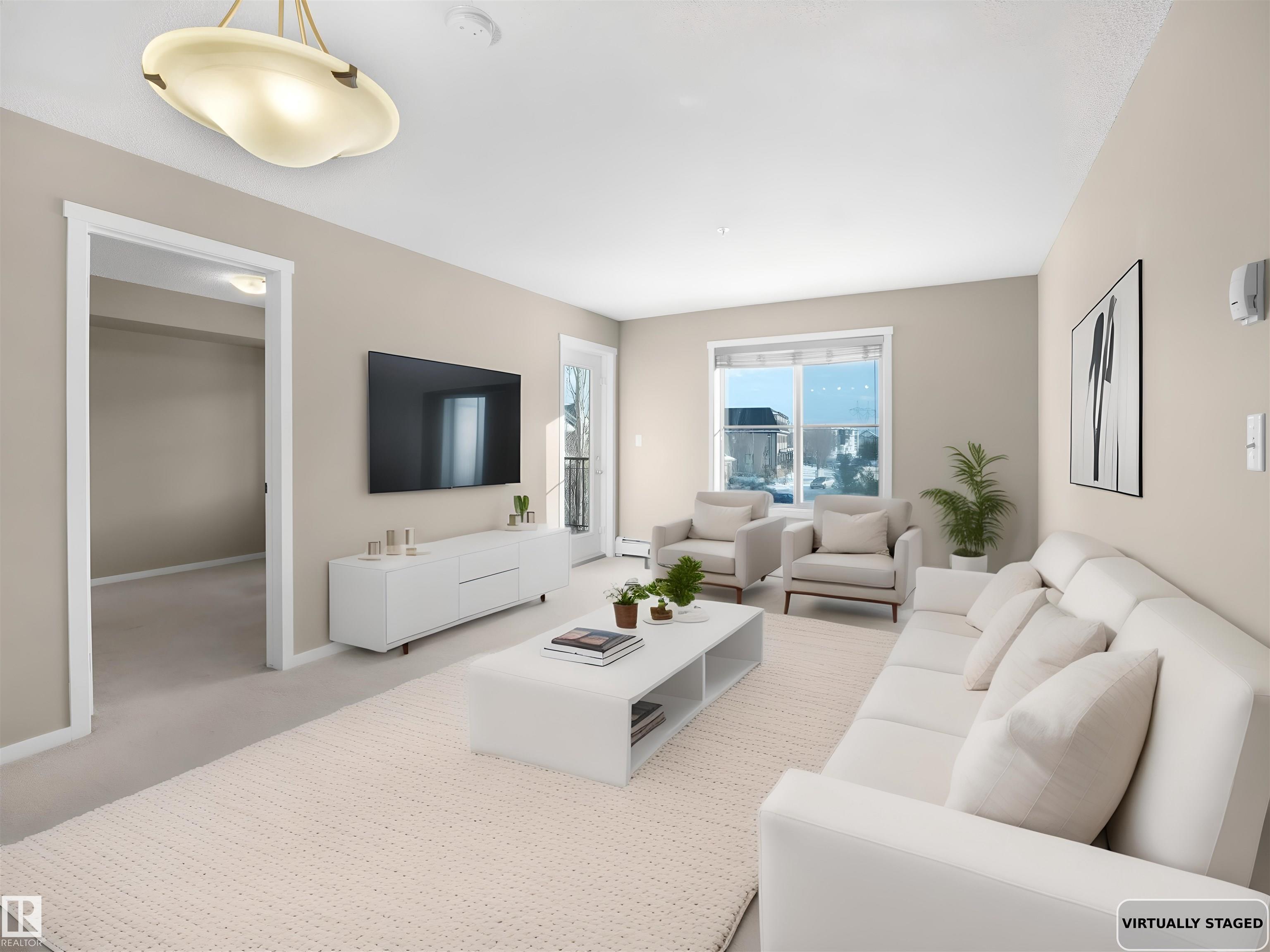 FRESHLY PAINTED & MOVE-IN READY! This bright and beautifully laid-out 3-BEDROOM, 2-BATHROOM condo in MacTaggart Ridge Gate offers over 835 sq.ft. of comfortable, modern living. The open-concept design is filled with natural light, featuring large windows and open sky views that create an airy, welcoming feel. The living, dining, and kitchen spaces flow seamlessly?perfect for everyday living and entertaining. The thoughtfully designed floor plan places the bedrooms ACROSS FROM ONE ANOTHER, offering excellent separation and privacy. The primary suite includes its own ensuite, complemented by a SECOND FULL BATHROOM for added convenience. Enjoy your private balcony, IN-SUITE LAUNDRY, and UNDERGROUND PARKING. Located in a well-maintained building with elevator access, this SOUTHWEST GEM is minutes from schools, TERWILLEGAR REC CENTRE, MacTaggart shopping, restaurants, and the LEGER TRANSIT CENTRE. An ideal opportunity for professionals, roommates, students, or investors alike.