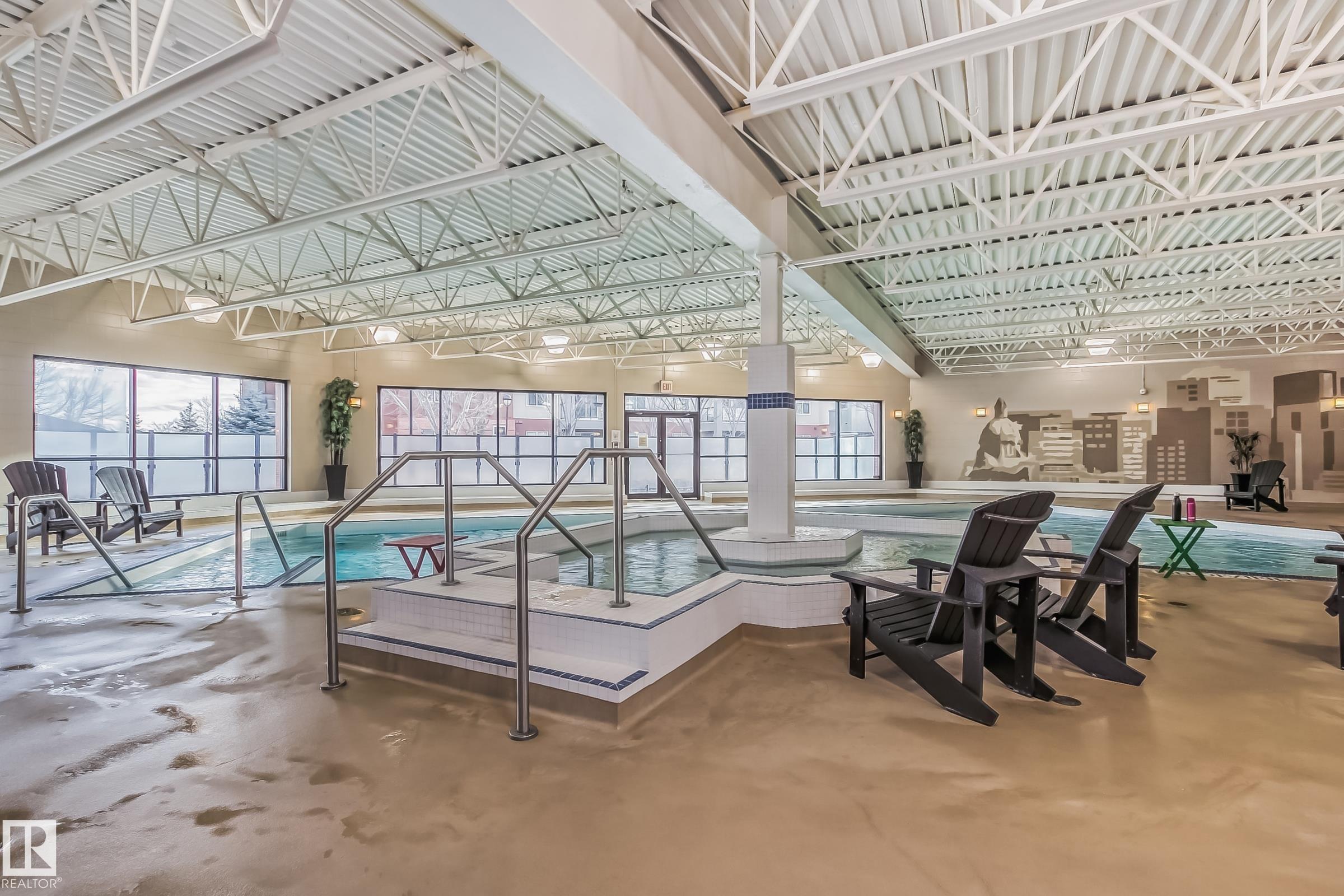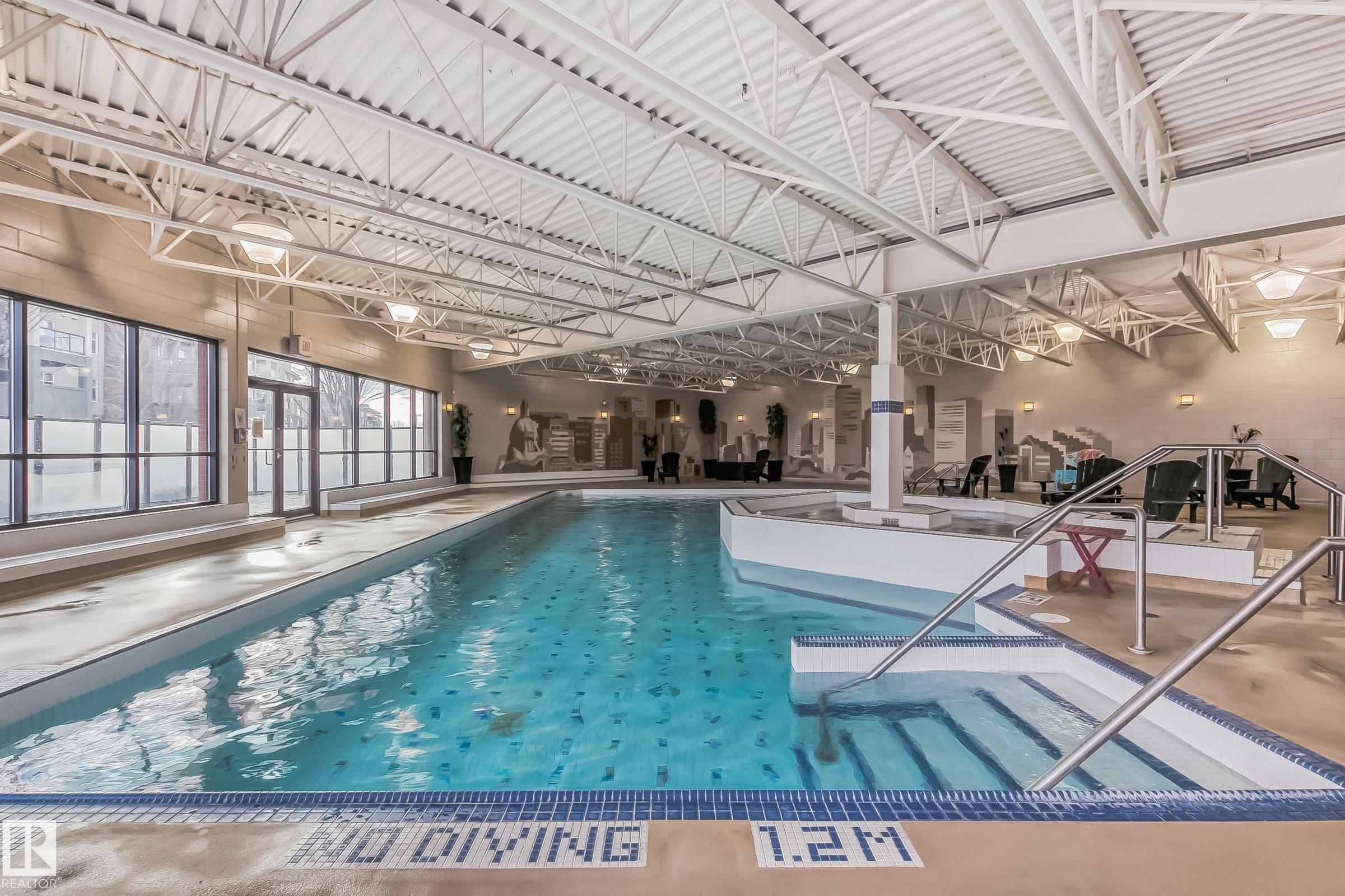 Discover LUXURY and trendy living at its finest!2 bedrooms , 2 bathrooms , and 2 parking stalls. This TOP FLOOR UNIT has been well cared for. Features large primary bedroom with large walk in closet and 3 pce ensuite .Beautiful dark cabinetry with plenty of counter space. Unit has west facing deck .Condo has insuite laundry.Secure underground HEATED PARKING and 1 additional parking stall outside.This trendy complex has plenty of AMENITIES including FITNESS ROOM , SWIMMIMG POOL,and party room .Enjoy this lifestyle in one of Edmontons finest complex!