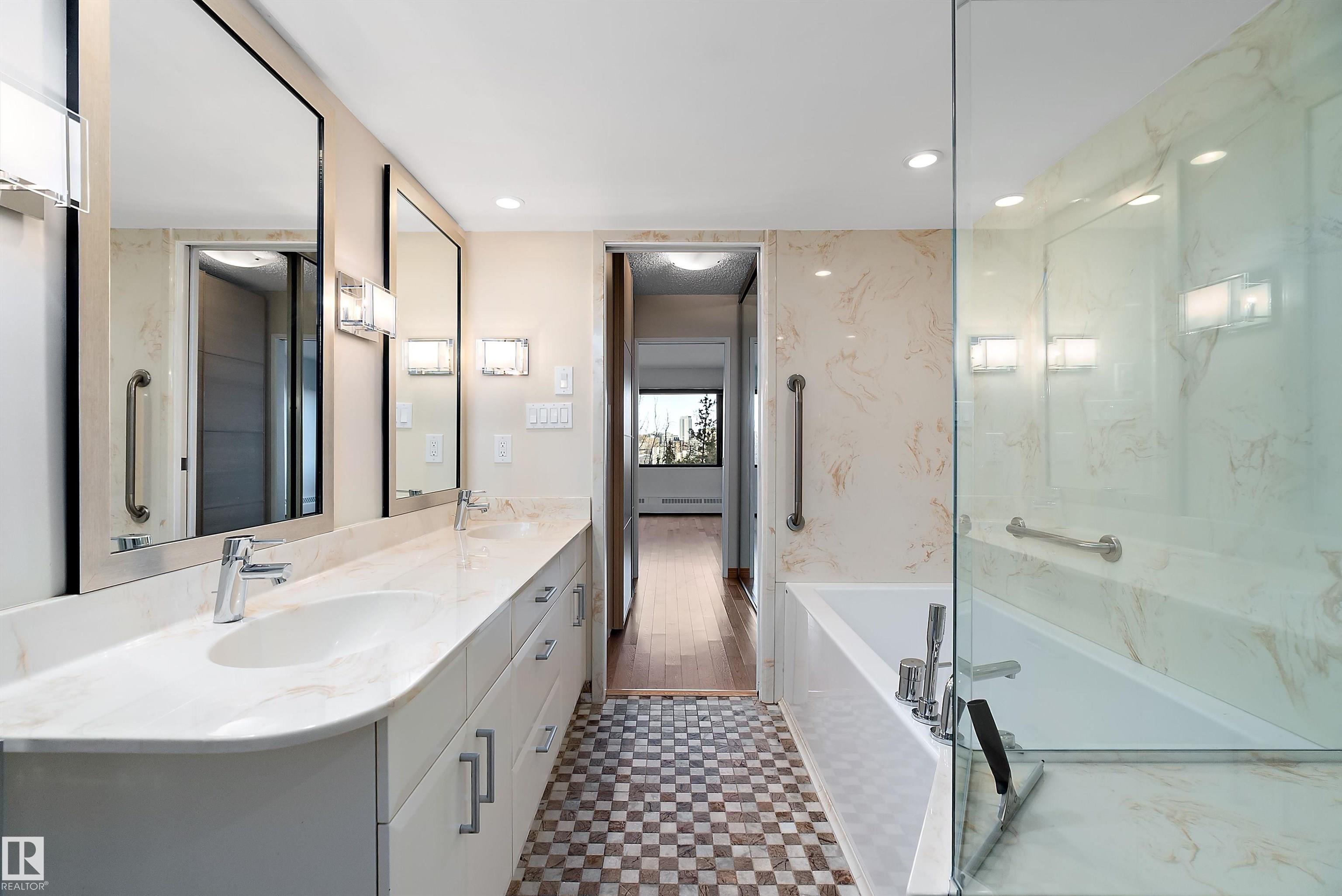 Discover elevated living at 9929 Saskatchewan Drive, offering a true lock-and-leave lifestyle in one of Edmonton?s most coveted locations. This beautifully designed condo features over 2,200 sq. ft. of timeless living space with 3 bedrooms and 2 full bathrooms. Step inside and be impressed by the expansive layout and classic design. The open-concept living and dining areas flow seamlessly into a modern European-inspired kitchen with a large island?perfect for entertaining. Floor-to-ceiling windows flood the home with natural light and showcase breathtaking 270° views of downtown Edmonton and the stunning river valley. Enjoy your spacious indoor balcony year-round (BBQs welcome!). Additional highlights include in-suite laundry and two heated underground parking stalls. Residents enjoy exceptional amenities: games room, party room, fitness centre, swimming pool, whirlpool, dry sauna, and outdoor patio. All just steps from Edmonton?s iconic River Valley trails. Don't miss this gem!