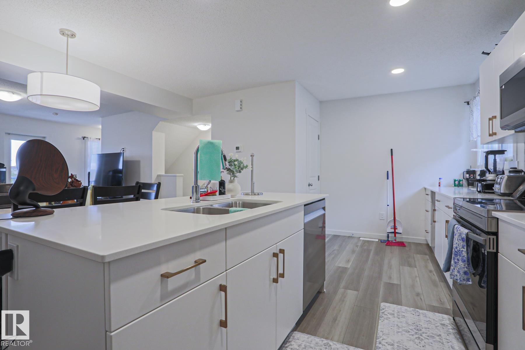 Welcome to this well-designed 3 bed 2.5 bath townhouse in Tamarack offering the perfect mix of space and convenience. The entry level provides access to a double attached garage and a functional laundry area. Upstairs features a bright open-concept main floor with a spacious living area, a private balcony with no rear neighbours, and a kitchen with island and appliances, plus a 2-piece bath. The upper level includes a primary bedroom with walk-in closet and 4-piece ensuite, along with two additional bedrooms and another full bath, ideal for family, guests, or a home office. Location is a major highlight with schools, parks, shopping, restaurants, and transit all nearby, making daily life easy. You are also close to The Meadows Recreation Centre and Elder Dr. Francis Whiskeyjack High School, plus quick access to Anthony Henday Drive and Whitemud Drive for an easy commute.