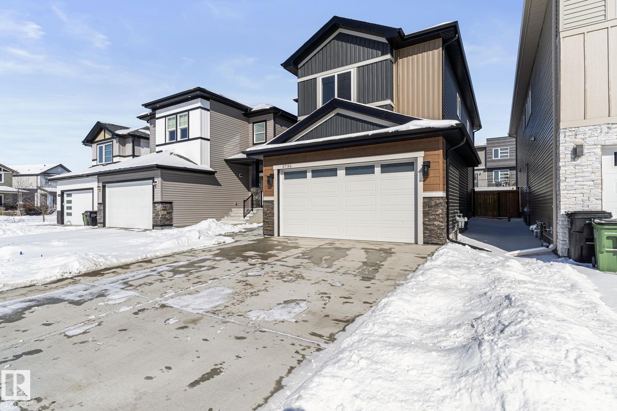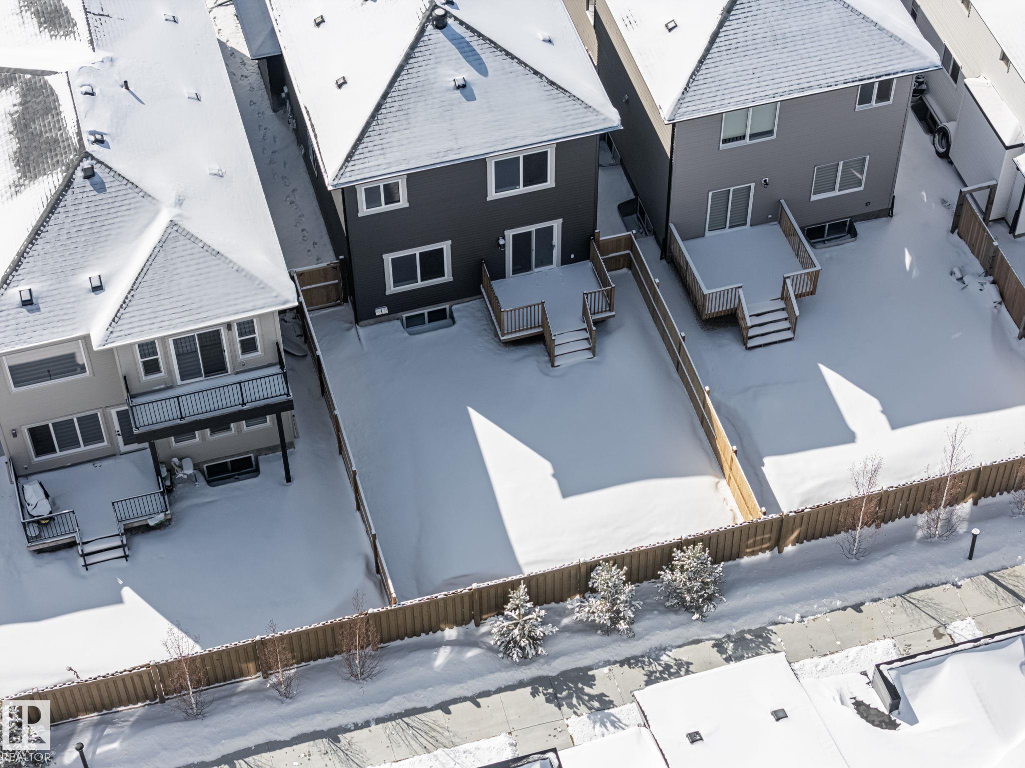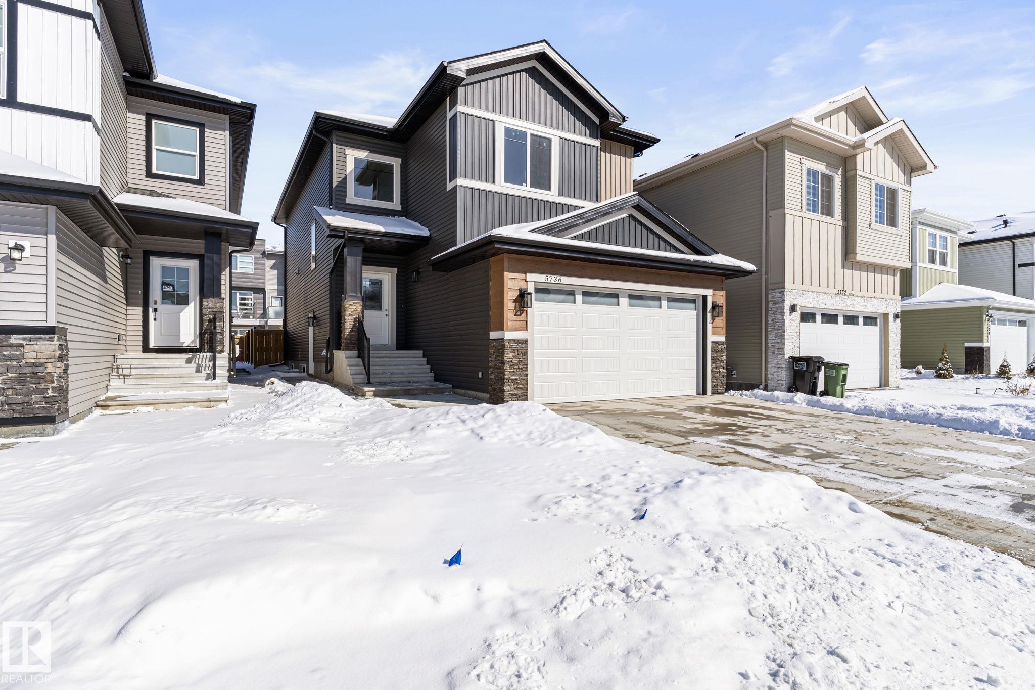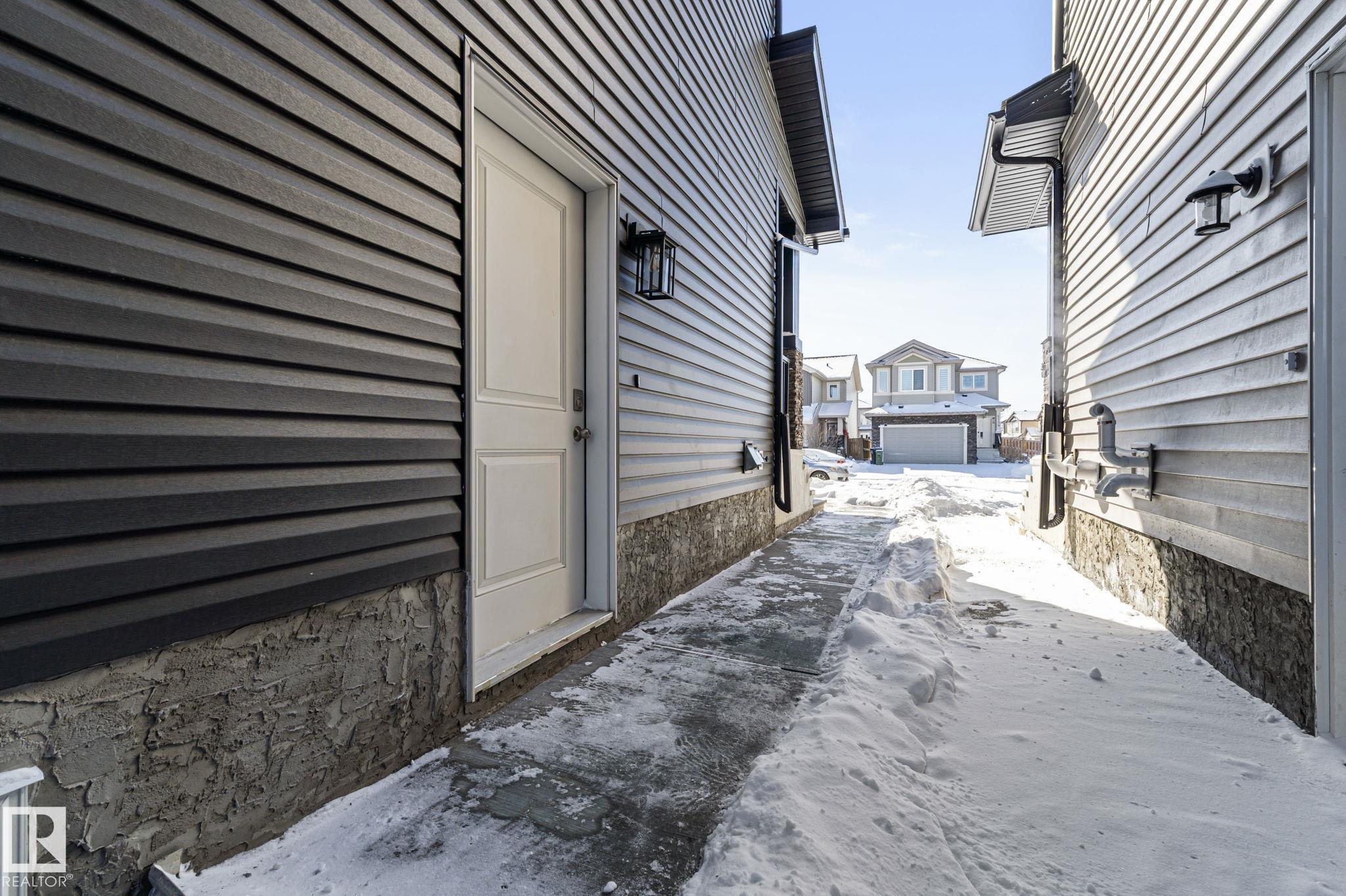 LEGAL SUITE! BRAND NEW! Class w/ distinction in McConachie. STUNNING curb appeal w/ contrasting siding & STONE accents. Upon entry you are welcomed to wide plank HARDWOOD flooring & a BRIGHT, open, SOARING CEILING. A RARE full bath & ample bedroom w/ walk-in closet w/ a door for a faux ensuite experience is exquisite. Cook in the contrasting ISLAND KITCHEN w/ QUARTZ counters, HERRING BONE backsplash, stainless appliances, & CORNER PANTRY. Eat in the GENEROUS dining area w/ access to the DECK or entertain in the living room w/ a vertical SLATE FEATURE WALL & FIREPLACE for that cozy feel. Upper floor has a generous den, 3 family friendly bedrooms w/ walk-in closets, a full bath plus a LUXURY 6 piece ENSUITE in the Primary to relax in at days end. BASE-MINT w/ SEPARATE ENTRY! No compromises, 2 bedrooms, insuite laundry, a living room & lovely kitchen w/ quartz & stainless appliances. Yard is landscaped & FULLY FENCED. Tiled floors & quartz in all baths. This builder is a craftsman! See it, you'll LOVE it!