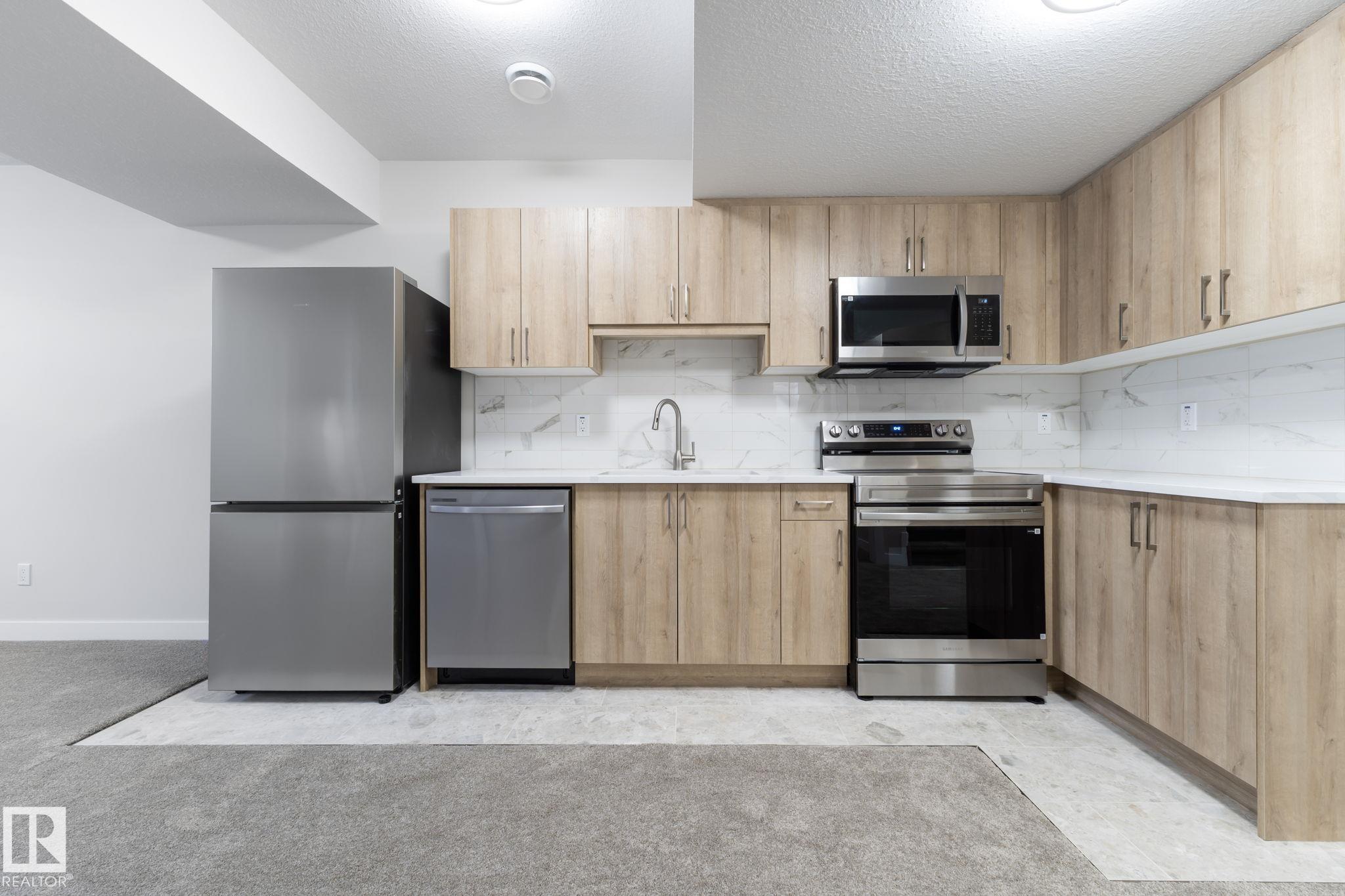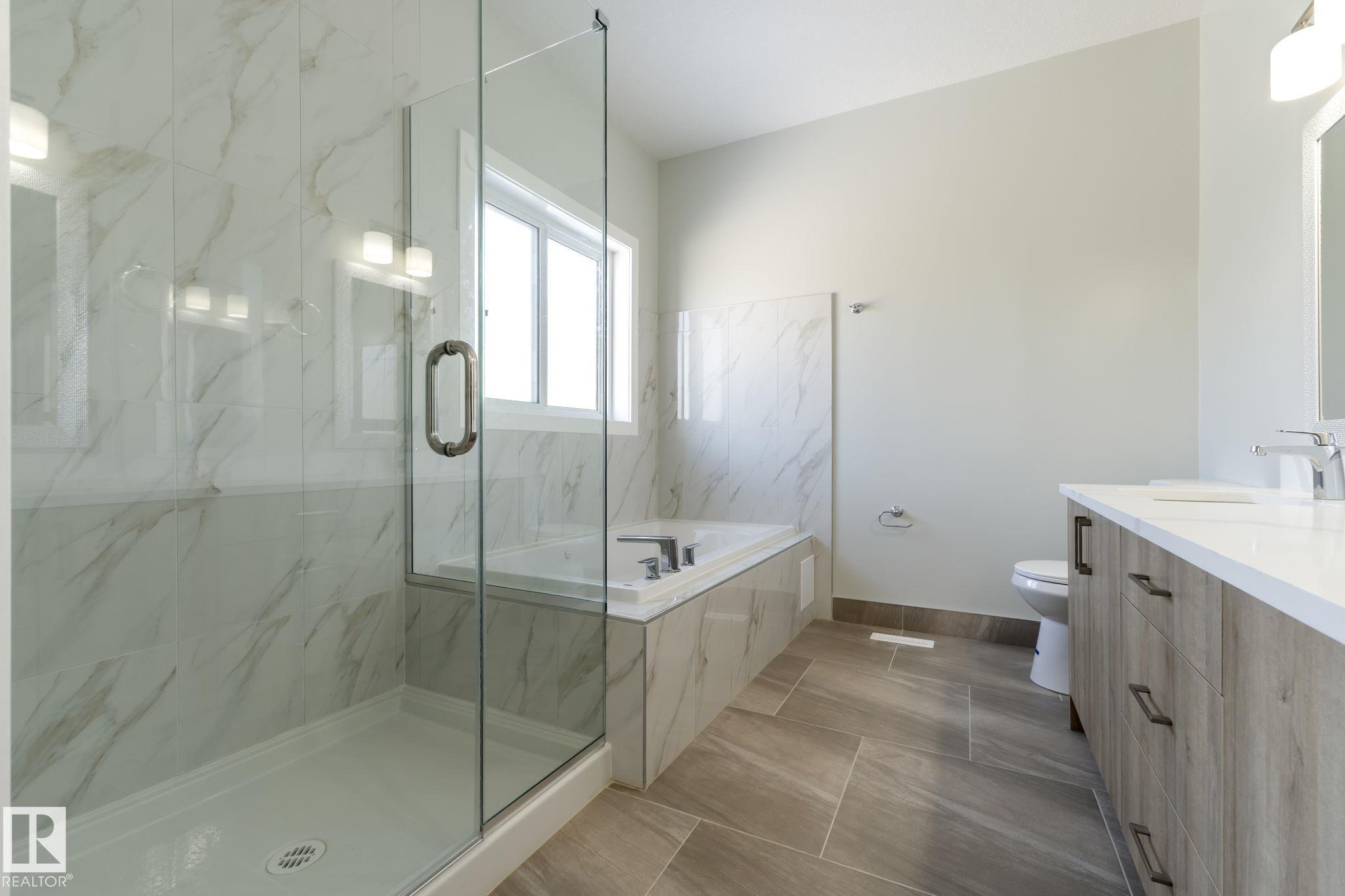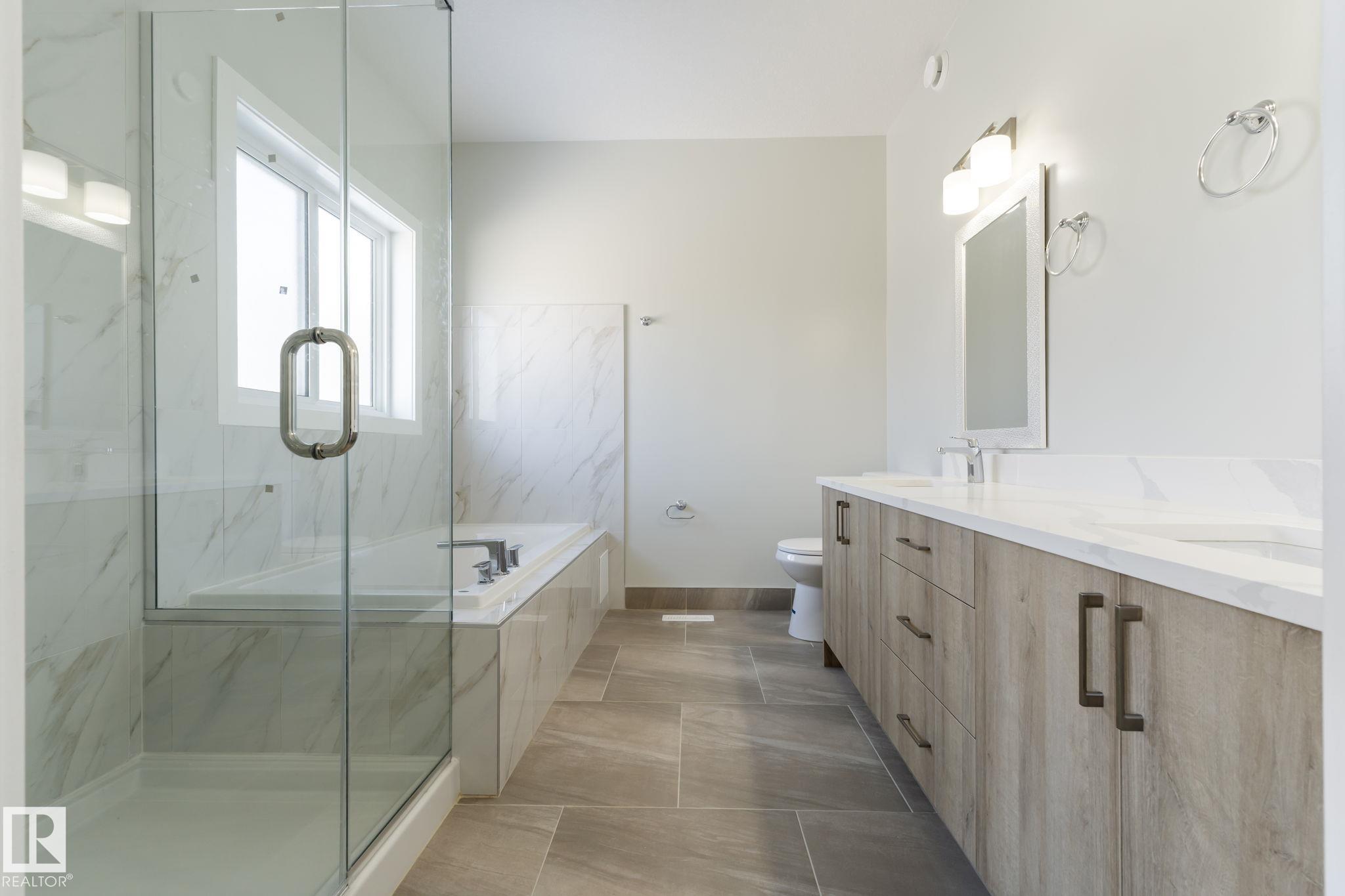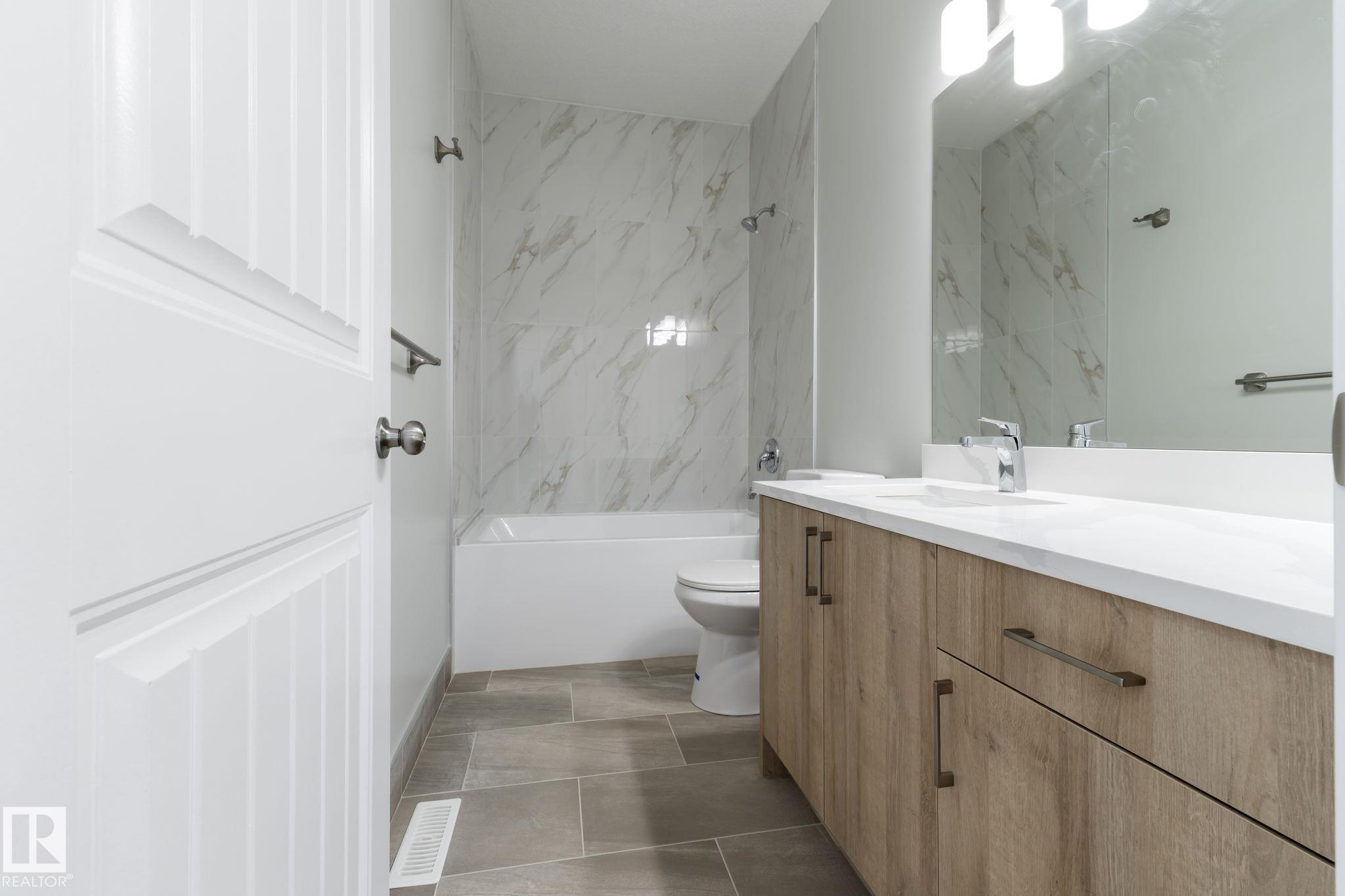 LEGAL SUITE! BRAND NEW! Class w/ distinction in McConachie. STUNNING curb appeal w/ contrasting siding & STONE accents. Upon entry you are welcomed to wide plank HARDWOOD flooring & a BRIGHT, open, SOARING CEILING. A RARE full bath & ample bedroom w/ walk-in closet w/ a door for a faux ensuite experience is exquisite. Cook in the contrasting ISLAND KITCHEN w/ QUARTZ counters, HERRING BONE backsplash, stainless appliances, & CORNER PANTRY. Eat in the GENEROUS dining area w/ access to the DECK or entertain in the living room w/ a vertical SLATE FEATURE WALL & FIREPLACE for that cozy feel. Upper floor has a generous den, 3 family friendly bedrooms w/ walk-in closets, a full bath plus a LUXURY 6 piece ENSUITE in the Primary to relax in at days end. BASE-MINT w/ SEPARATE ENTRY! No compromises, 2 bedrooms, insuite laundry, a living room & lovely kitchen w/ quartz & stainless appliances. Yard is landscaped & FULLY FENCED. Tiled floors & quartz in all baths. This builder is a craftsman! See it, you'll LOVE it!