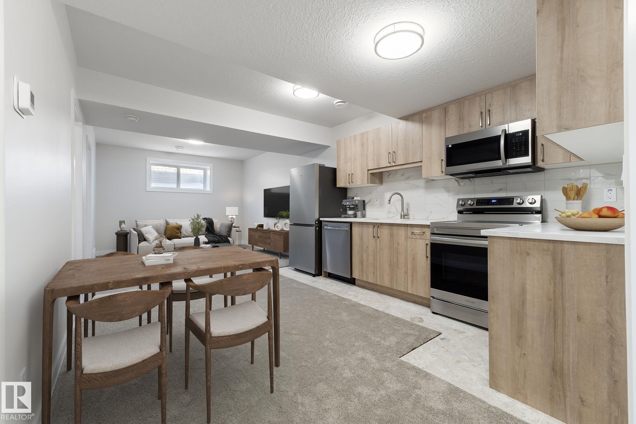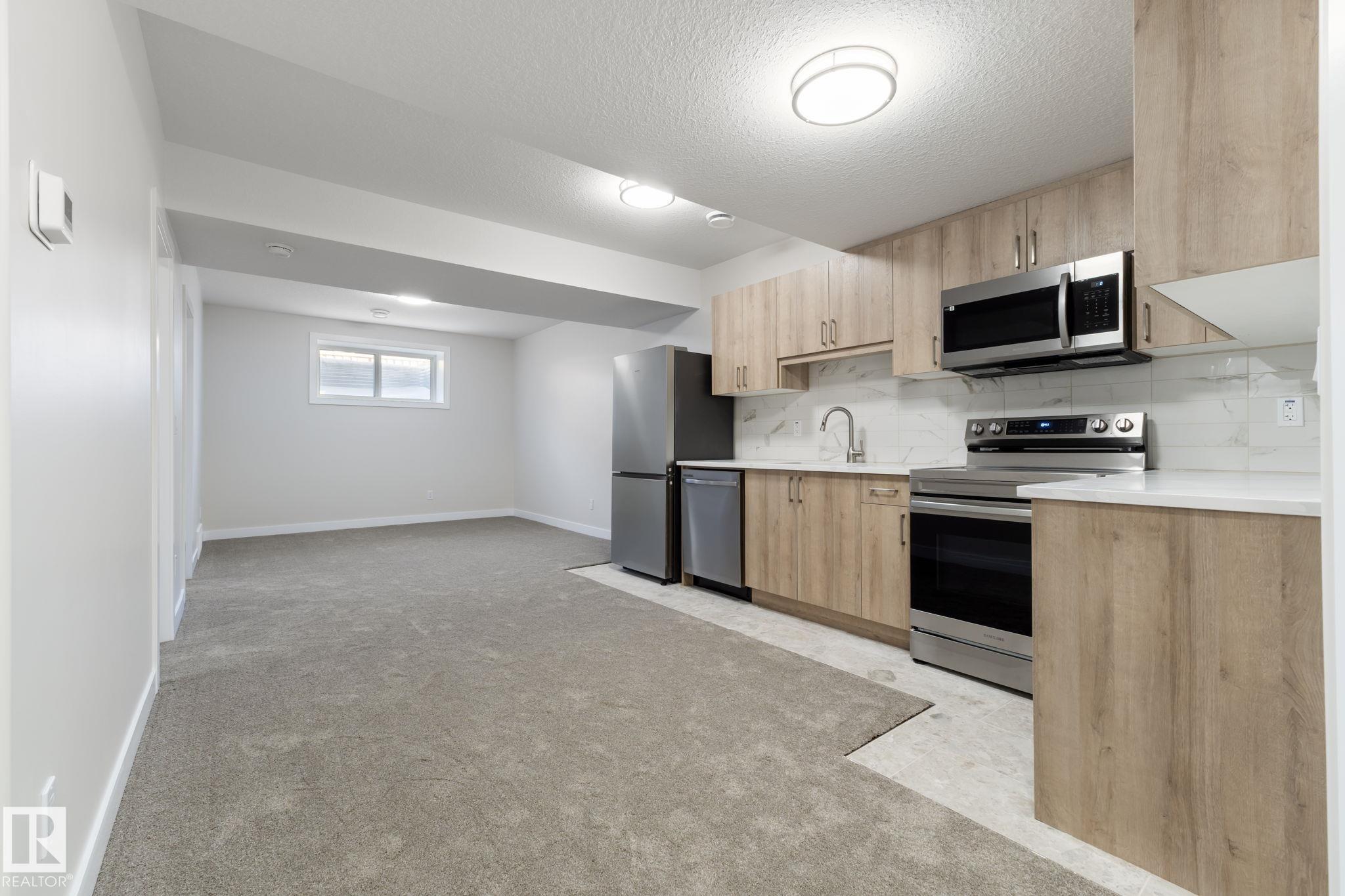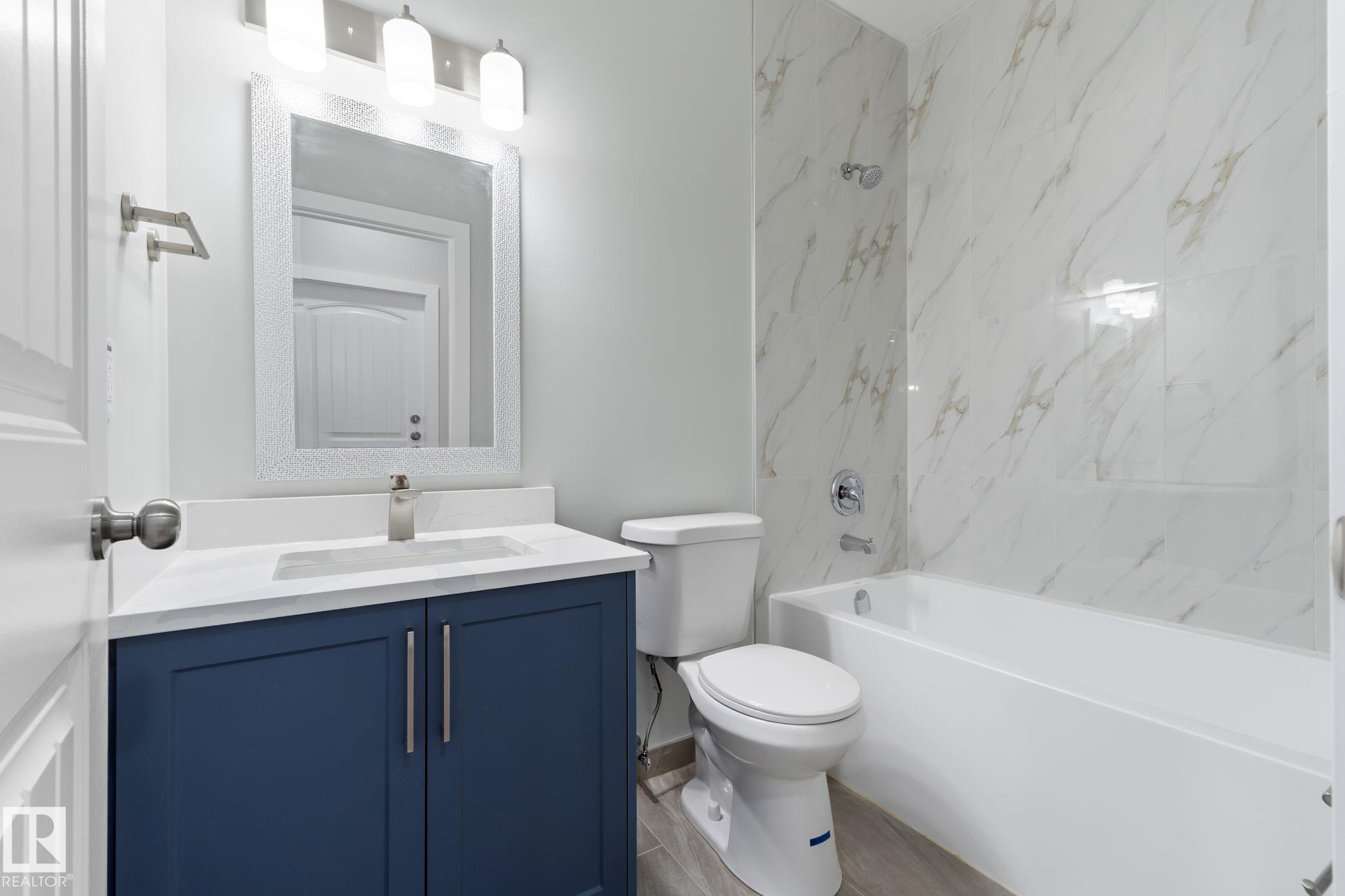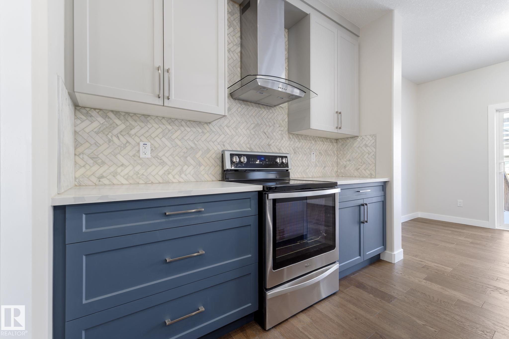 LEGAL SUITE! BRAND NEW! Class w/ distinction in McConachie. STUNNING curb appeal w/ contrasting siding & STONE accents. Upon entry you are welcomed to wide plank HARDWOOD flooring & a BRIGHT, open, SOARING CEILING. A RARE full bath & ample bedroom w/ walk-in closet w/ a door for a faux ensuite experience is exquisite. Cook in the contrasting ISLAND KITCHEN w/ QUARTZ counters, HERRING BONE backsplash, stainless appliances, & CORNER PANTRY. Eat in the GENEROUS dining area w/ access to the DECK or entertain in the living room w/ a vertical SLATE FEATURE WALL & FIREPLACE for that cozy feel. Upper floor has a generous den, 3 family friendly bedrooms w/ walk-in closets, a full bath plus a LUXURY 6 piece ENSUITE in the Primary to relax in at days end. BASE-MINT w/ SEPARATE ENTRY! No compromises, 2 bedrooms, insuite laundry, a living room & lovely kitchen w/ quartz & stainless appliances. Yard is landscaped & FULLY FENCED. Tiled floors & quartz in all baths. This builder is a craftsman! See it, you'll LOVE it!