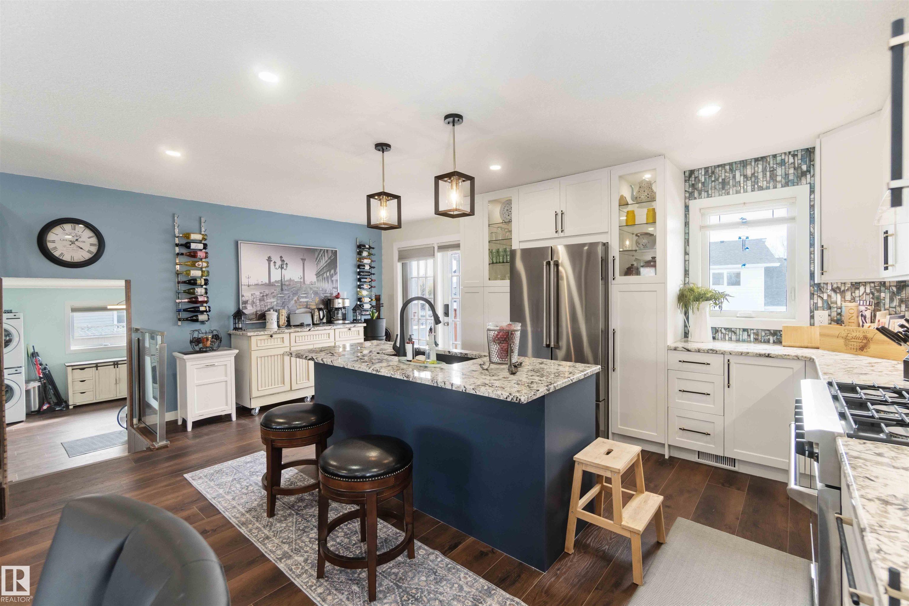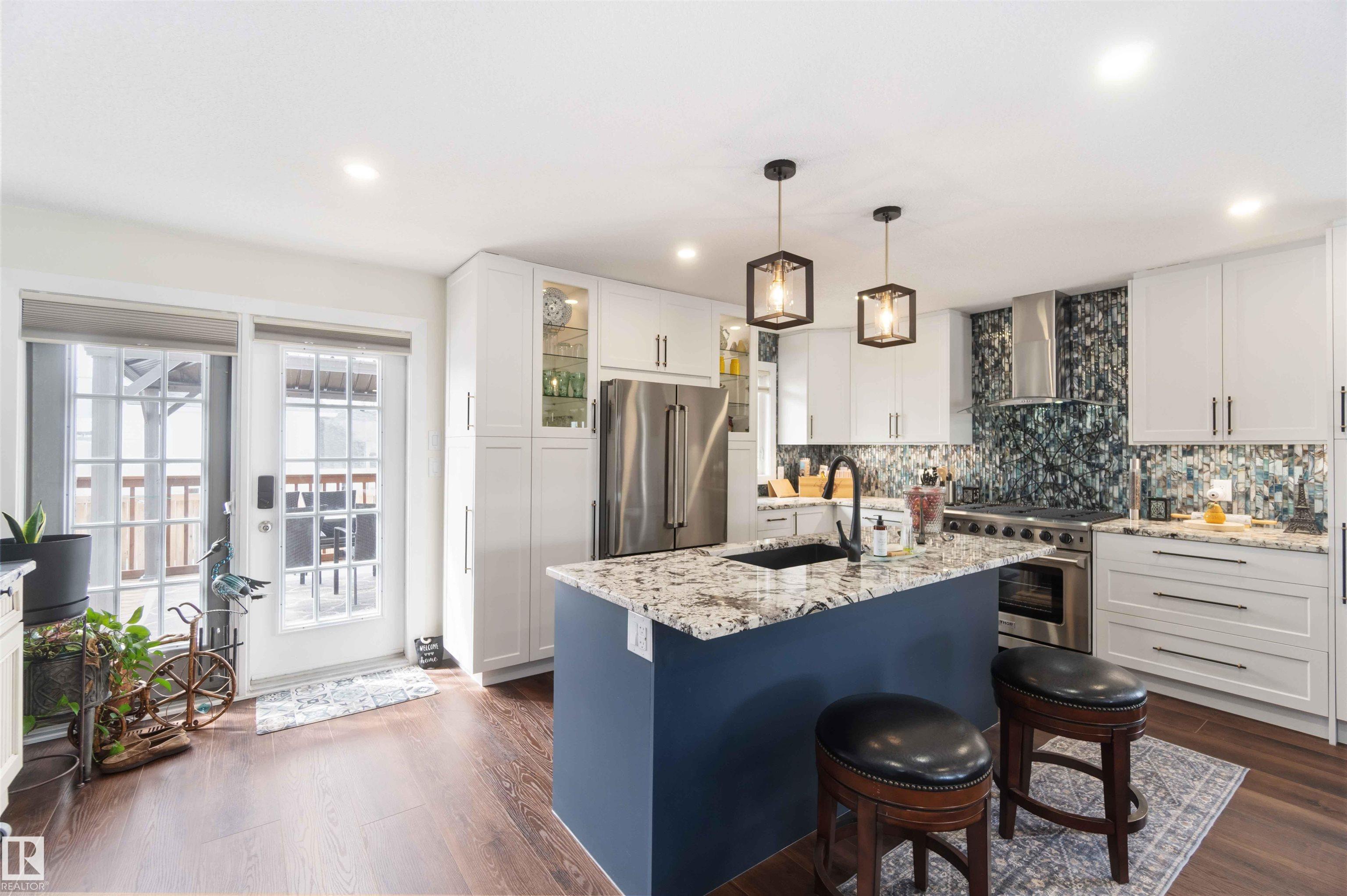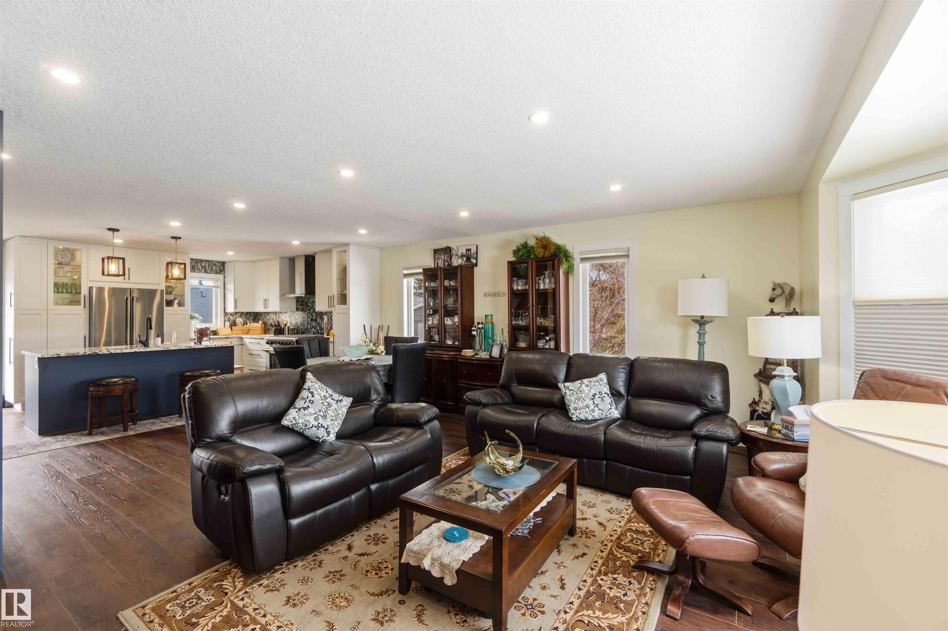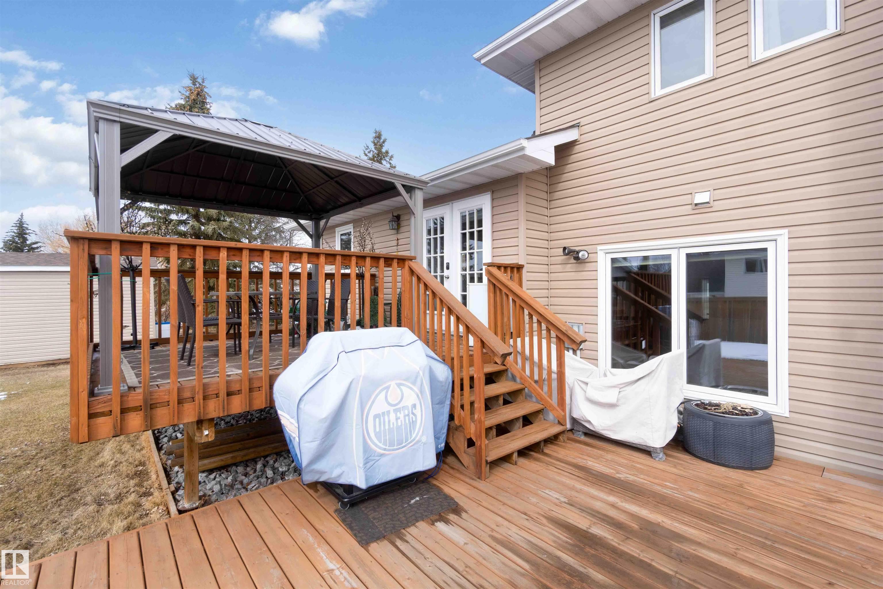 RARE opportunity on a MASSIVE pie-shaped lot backing directly onto a greenbelt & scenic walking trail homes like this seldom come to market. Tucked away on a quiet, treed cul-de-sac, this impressive property offers over 2,700 sq ft of developed living space across five well designed levels perfect for growing families. Enjoy warm evenings on the expansive 2 tier deck overlooking the huge, private backyard with southwest exposure that fills the home with natural light. Inside, the home is bright & beautifully updated with a modern open-concept layout. The renovated kitchen features granite countertops, SS appliances, a lg central island. The spacious living room is anchored by a gas FP with a floor-to-ceiling acoustic paneling surround. New vinyl plank flooring & carpet run throughout, with most windows replaced. The fully developed walk-up basement offers an in-law suite with a separate entrance?ideal for extended family. Updates include windows, lighting, flooring, furnace, HW tank & O/S 20x26 shed.