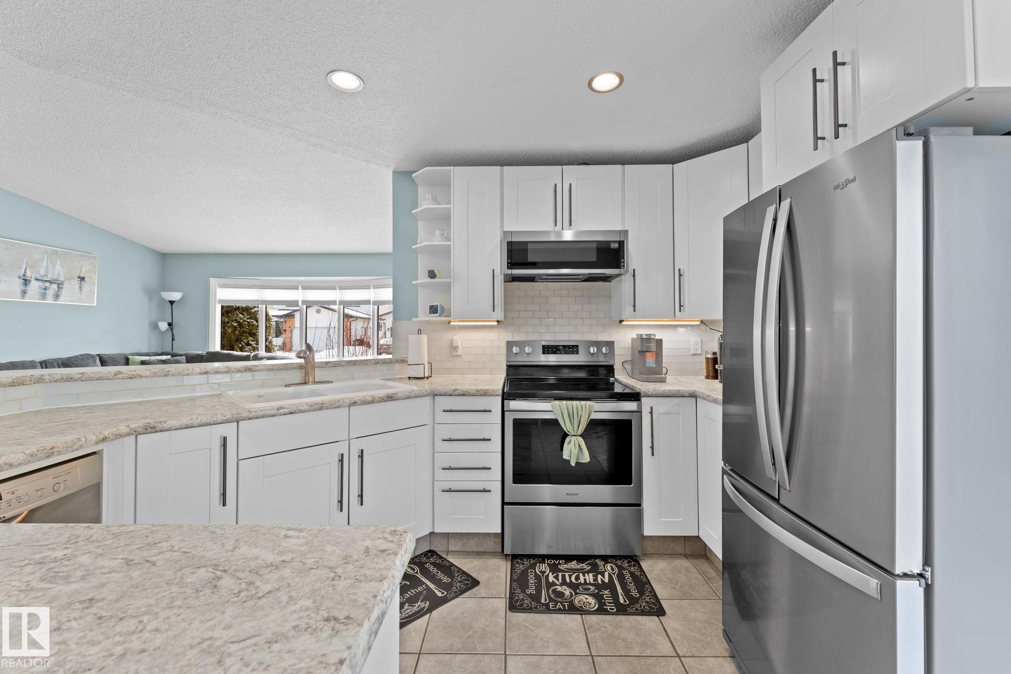 Welcome home to this beautifully upgraded 4-level split in Kilkenny! Updates include a newer kitchen, windows, shingles, furnace, hot water tank, A/C, and appliances. The main floor offers a spacious entry with garage access, a bright living room, dining area, and an updated kitchen with patio doors leading to the deck and huge backyard. Upstairs features the primary bedroom, a second bedroom, full bathroom, and a versatile loft space. The third level includes a third bedroom, 3-piece bath, and a renovated family room with electric fireplace. The finished basement offers a fourth bedroom, additional living space, and a large utility/laundry room with plenty of storage. Located close to schools, parks, shopping, and more!