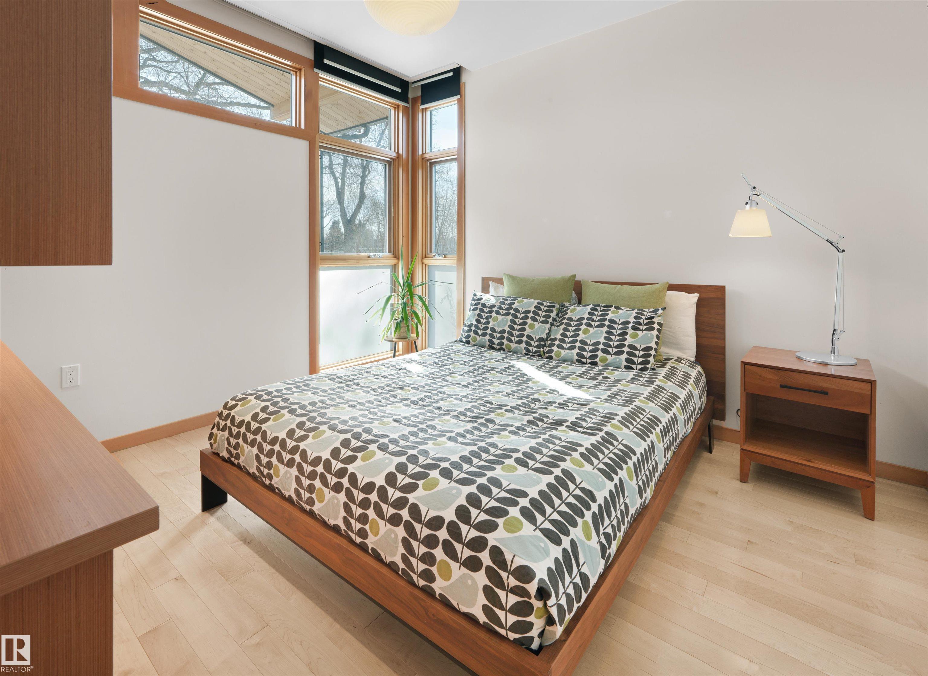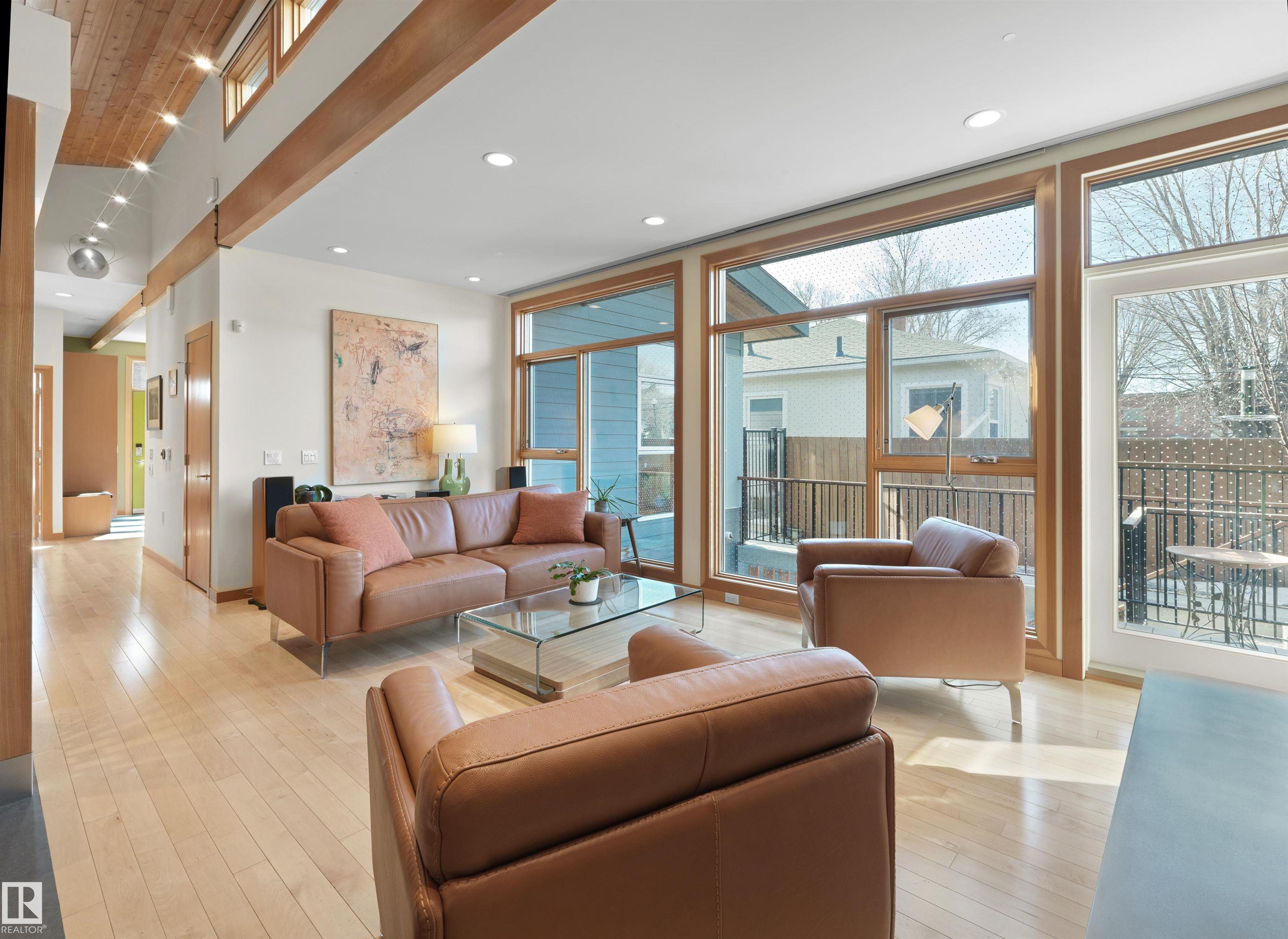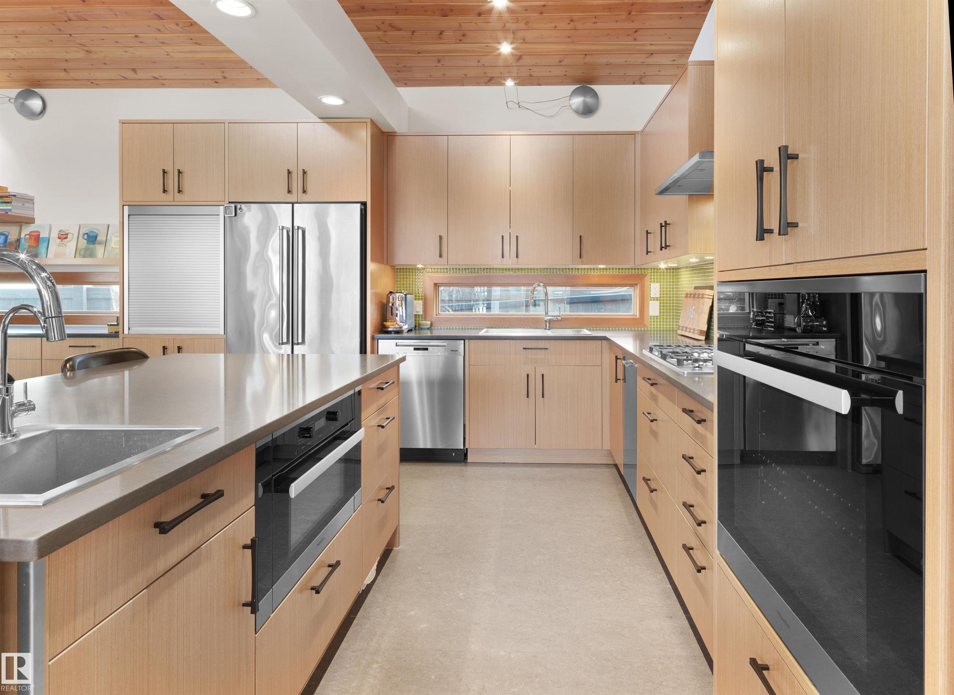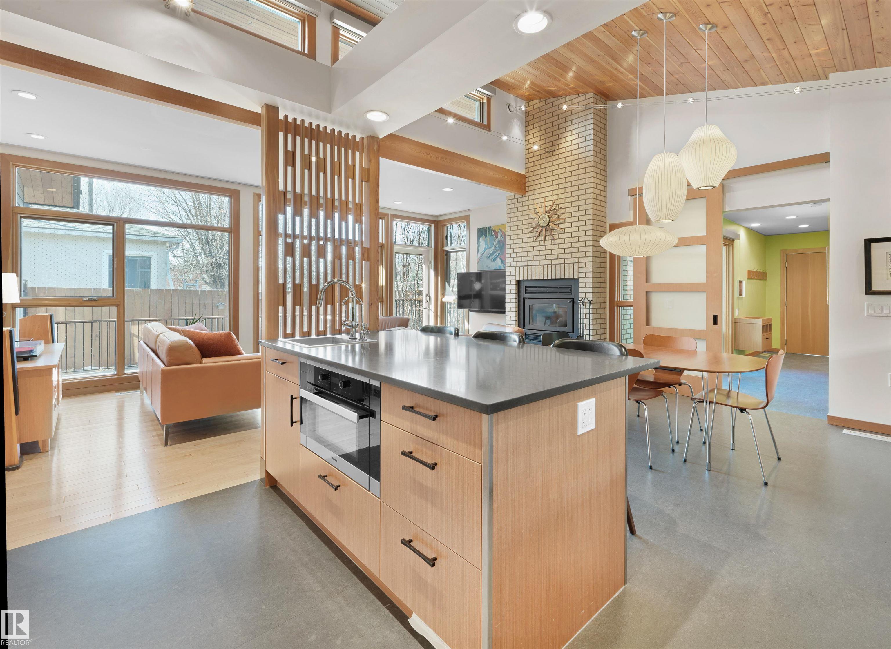 Glenora architecture at its finest - The Mid-Century Modern design aesthetic is typically characterized by clean, simple lines & honest use of materials ? blending natural elements with quality construction. This architectural beauty is a true repreparation of MCM! With just over 3487sqft of finished living space (1745sqft main floor) ? 3 bedrooms, 3.5 bathrooms, Walkout basement, 20ft ceilings, ELEVATOR, barrier free, in floor heating, wood fired/high efficiency fireplace, 2 laundry rooms, oversized double ATTACHED garage (possible 3 or 4 car garage) & more! From the solid core doors to the wood-framed/oversized windows (all with electric blinds) this home has every luxury feature you are looking for. Custom cabinetry by Waygood, Miele appliances, quartz countertops, AC, outdoor lounge area with motorized screen & heater for year-round use. A truly one of a kind Mid-century Modern architectural home!