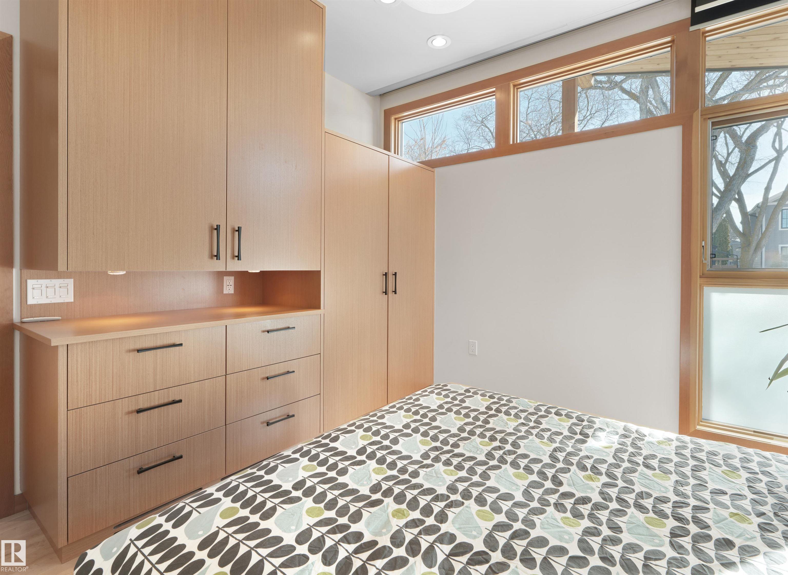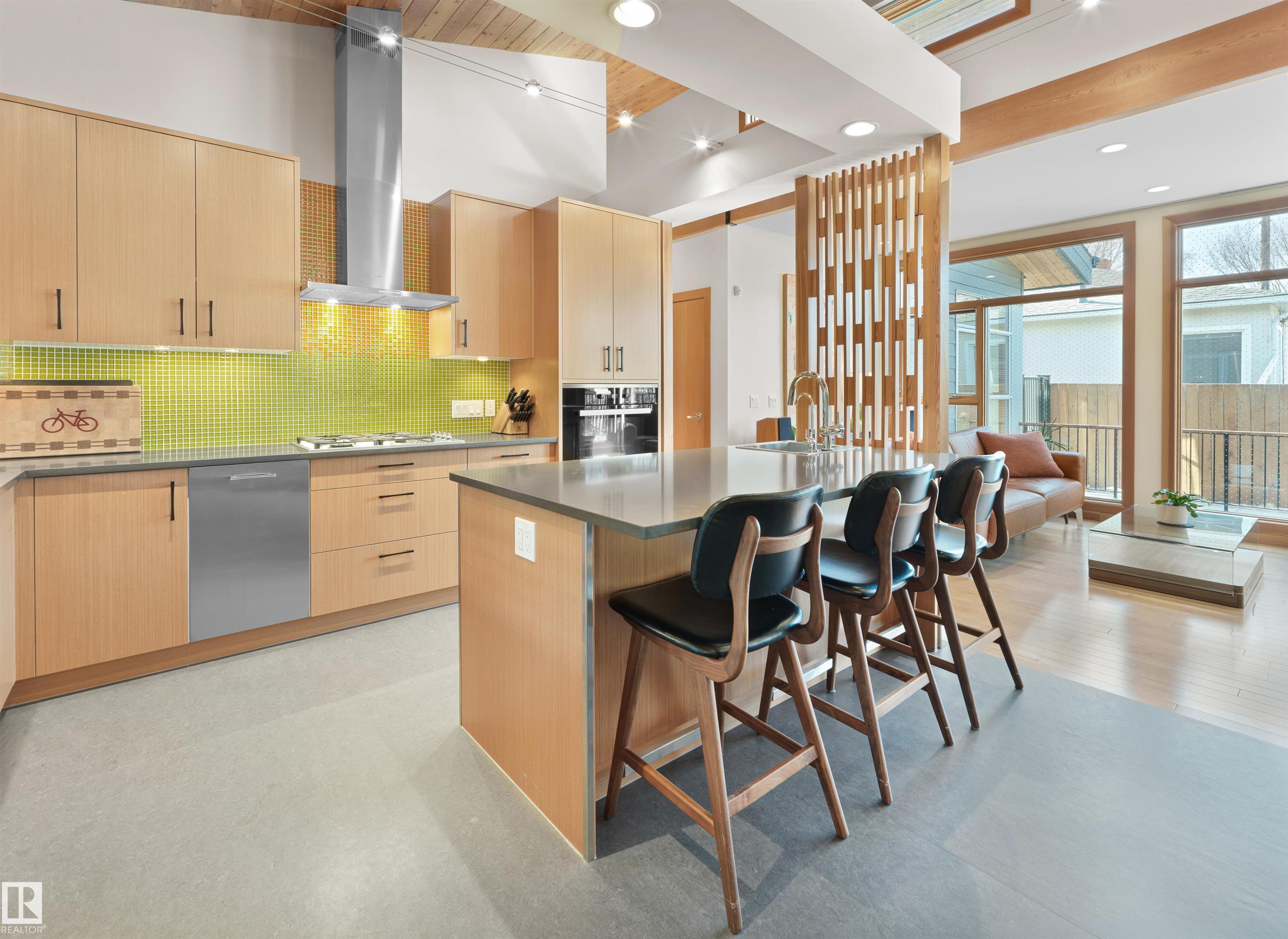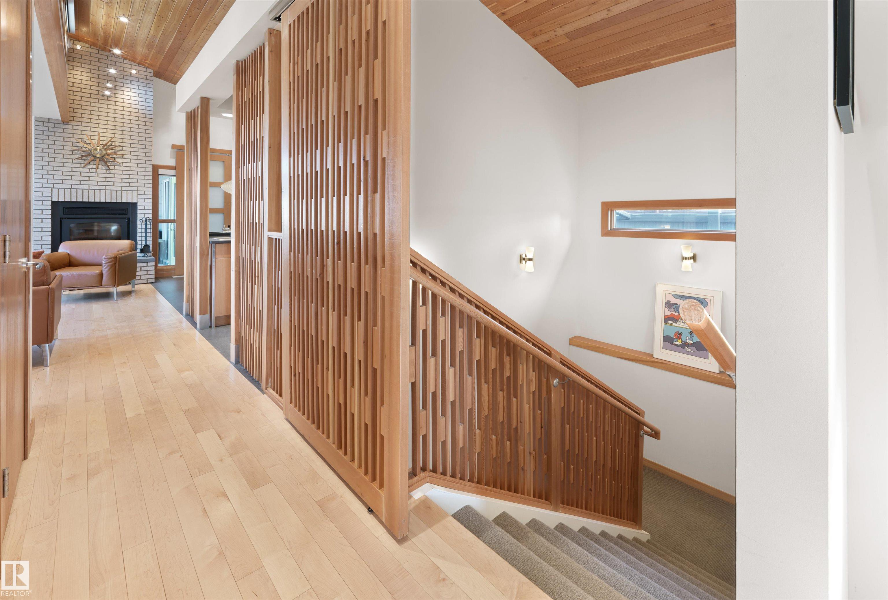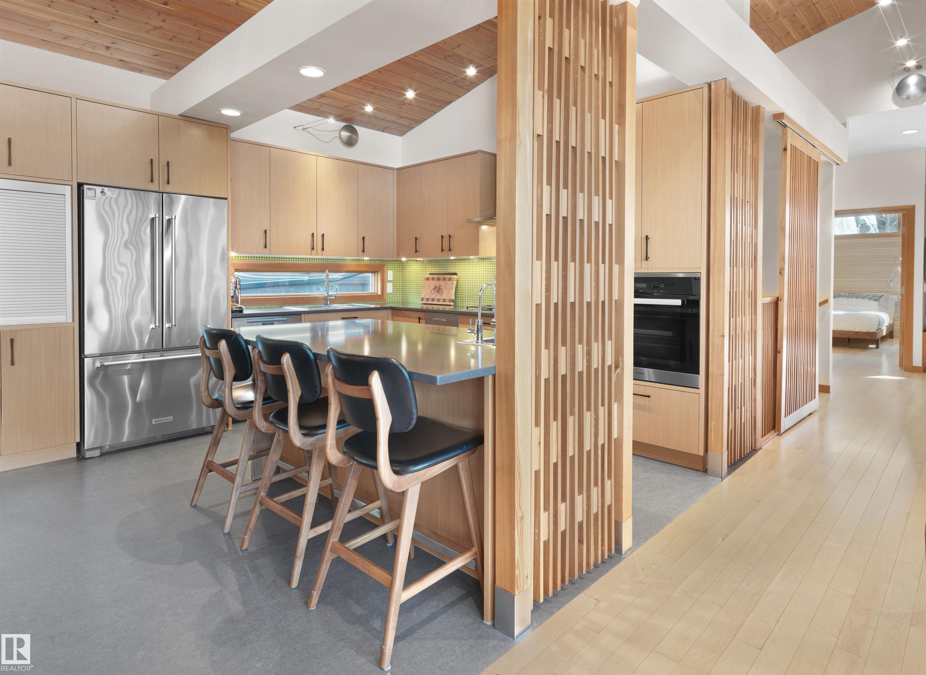 Glenora architecture at its finest - The Mid-Century Modern design aesthetic is typically characterized by clean, simple lines & honest use of materials ? blending natural elements with quality construction. This architectural beauty is a true repreparation of MCM! With just over 3487sqft of finished living space (1745sqft main floor) ? 3 bedrooms, 3.5 bathrooms, Walkout basement, 20ft ceilings, ELEVATOR, barrier free, in floor heating, wood fired/high efficiency fireplace, 2 laundry rooms, oversized double ATTACHED garage (possible 3 or 4 car garage) & more! From the solid core doors to the wood-framed/oversized windows (all with electric blinds) this home has every luxury feature you are looking for. Custom cabinetry by Waygood, Miele appliances, quartz countertops, AC, outdoor lounge area with motorized screen & heater for year-round use. A truly one of a kind Mid-century Modern architectural home!