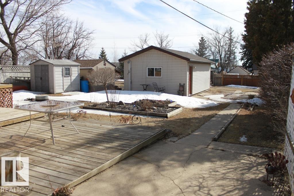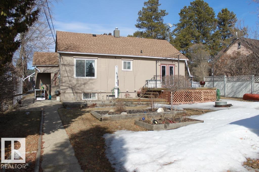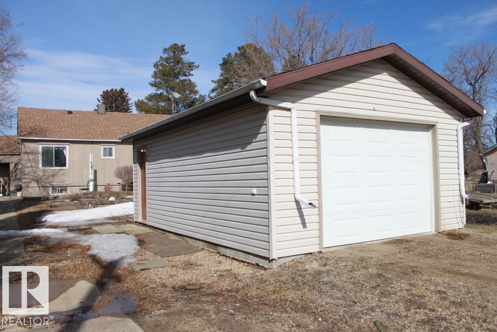 Very clean and well kept bungalow situated in the Village of Holden. Main floor features oak cabinets in the updated kitchen, an upgraded main bath with walk-in shower, walk-in closet in primary bedroom and patio doors leading to deck off the second bedroom. Bright living room with free-standing gas fireplace. Stackable main floor laundry. Mostly developed lower level with plenty of usable space along with an additional bathroom with jetted-tub. Oversized single garage, 50 x 140 lot with room for RV parking. You're sure to enjoy this beautiful home!
