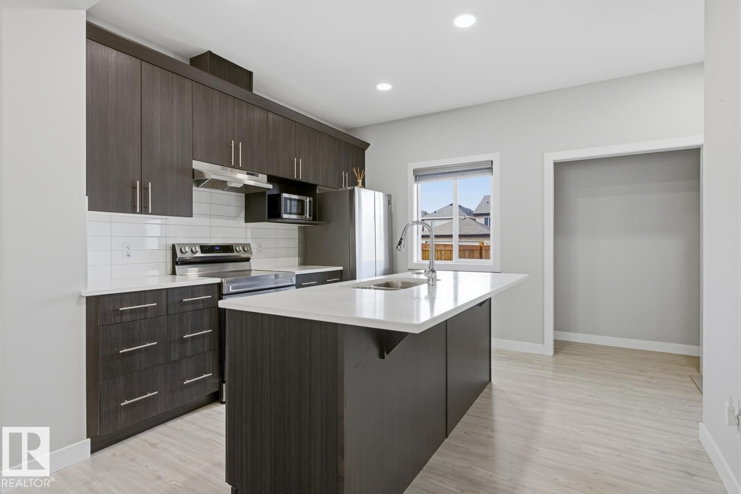 JUST LIKE NEW! This impeccably maintained 2-storey home, built in 2021, offers 3 bedrooms, 2.5 bathrooms, and a double detached garage, perfect for families or first-time buyers. Step inside to a bright and welcoming living room that seamlessly flows into a spacious dining area. The modern kitchen features a functional layout with a central island, sleek quartz countertops, and stainless-steel appliances. Upstairs, you?ll find a generous primary bedroom complete with a walk-in closet and a 4-piece ensuite. Two additional well-sized bedrooms and another full 4-piece bathroom complete the upper level. The unfinished basement provides a fantastic opportunity to customize and add value to suit your needs. Enjoy summer evenings in the fully fenced, west-facing backyard, while the double garage offers convenience and comfort during the winter months. Located close to schools, shopping, public transit, and with quick access to Anthony Henday Drive and major routes. Note: some photos have been virtually staged.