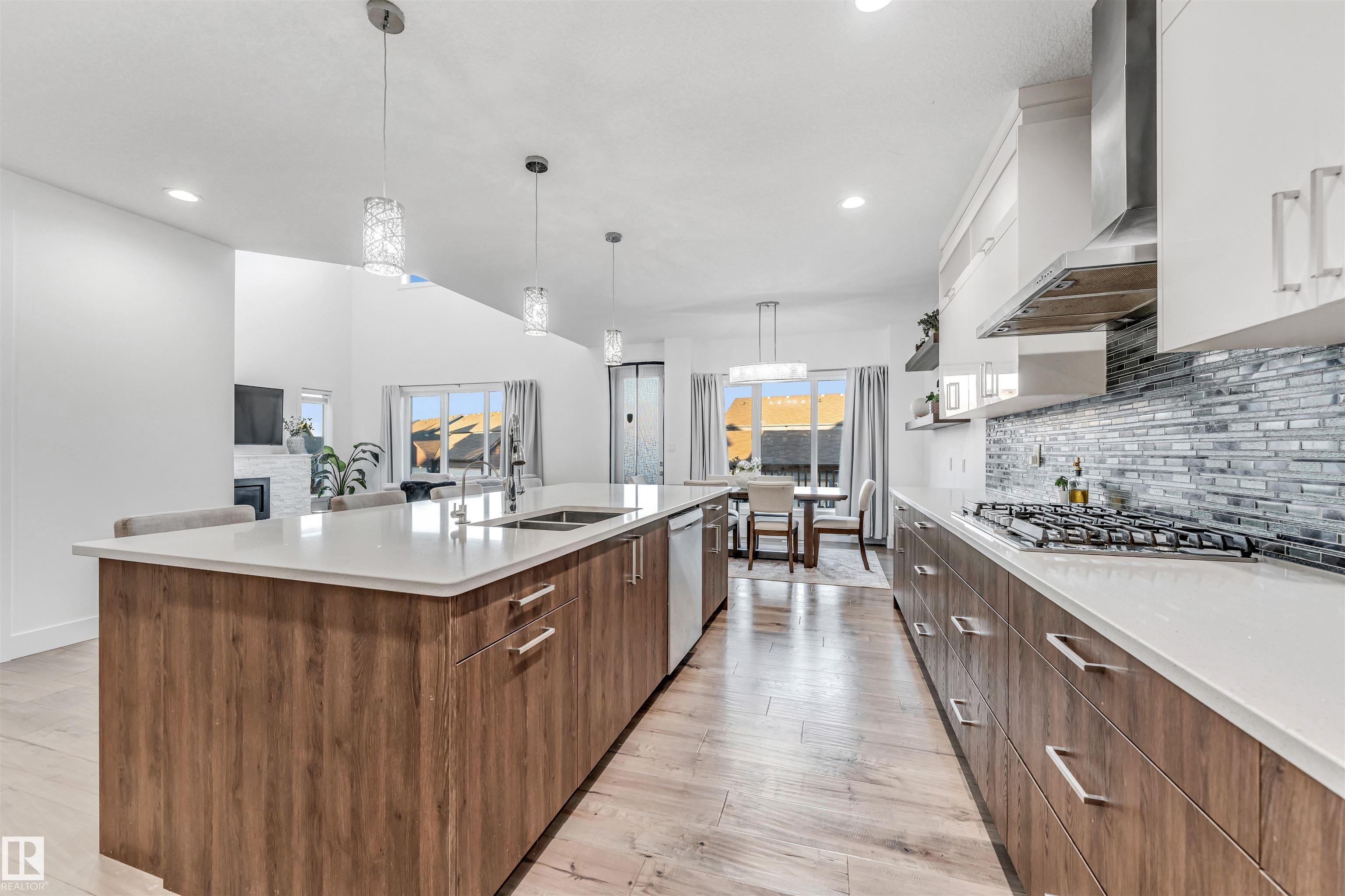 Welcome to Graydon Hill, a serene southwest community surrounded by nature yet minutes from city conveniences. This beautifully maintained home offers over 2,700 sq.ft. plus a fully finished basement with a side entrance. Enjoy natural light throughout w/ soaring windows & a vaulted living room. Gorgeous kitchen features a walk through pantry, upgraded appliances (incl. gas stove), Air Condition & reverse osmosis. Open concept kitchen, dining, living room + MAIN FLOOR BATH & DEN/BDRM. Upstairs find huge primary walk-in & 5pc ensuite. 2 more well-sized bedrooms, 4pc bathroom, laundry & spacious bonus room. Basement offers 2 additional bedrooms, living area & wet bar. Features engineered hardwood, quartz throughout, central vac rough-in, 8' doors, 9' ceilings, new windows, BACK GATE for ADDTL PARKING & new landscaping. Walking trail across the street leading to a naturalized storm pond + large park down the block. Easy access to Henday, Calgary Trail, Currents of Windermere, South Common & more!