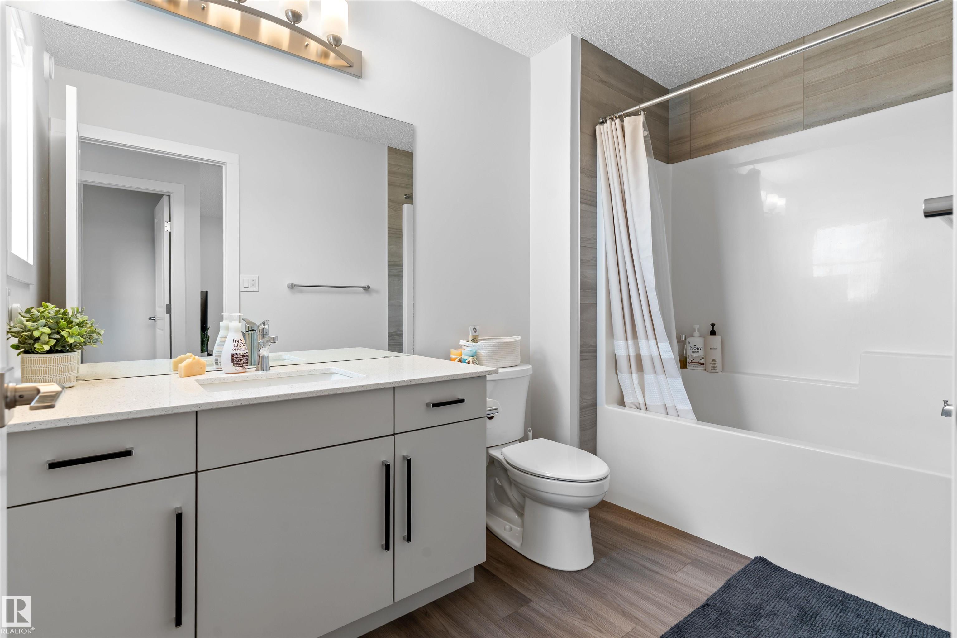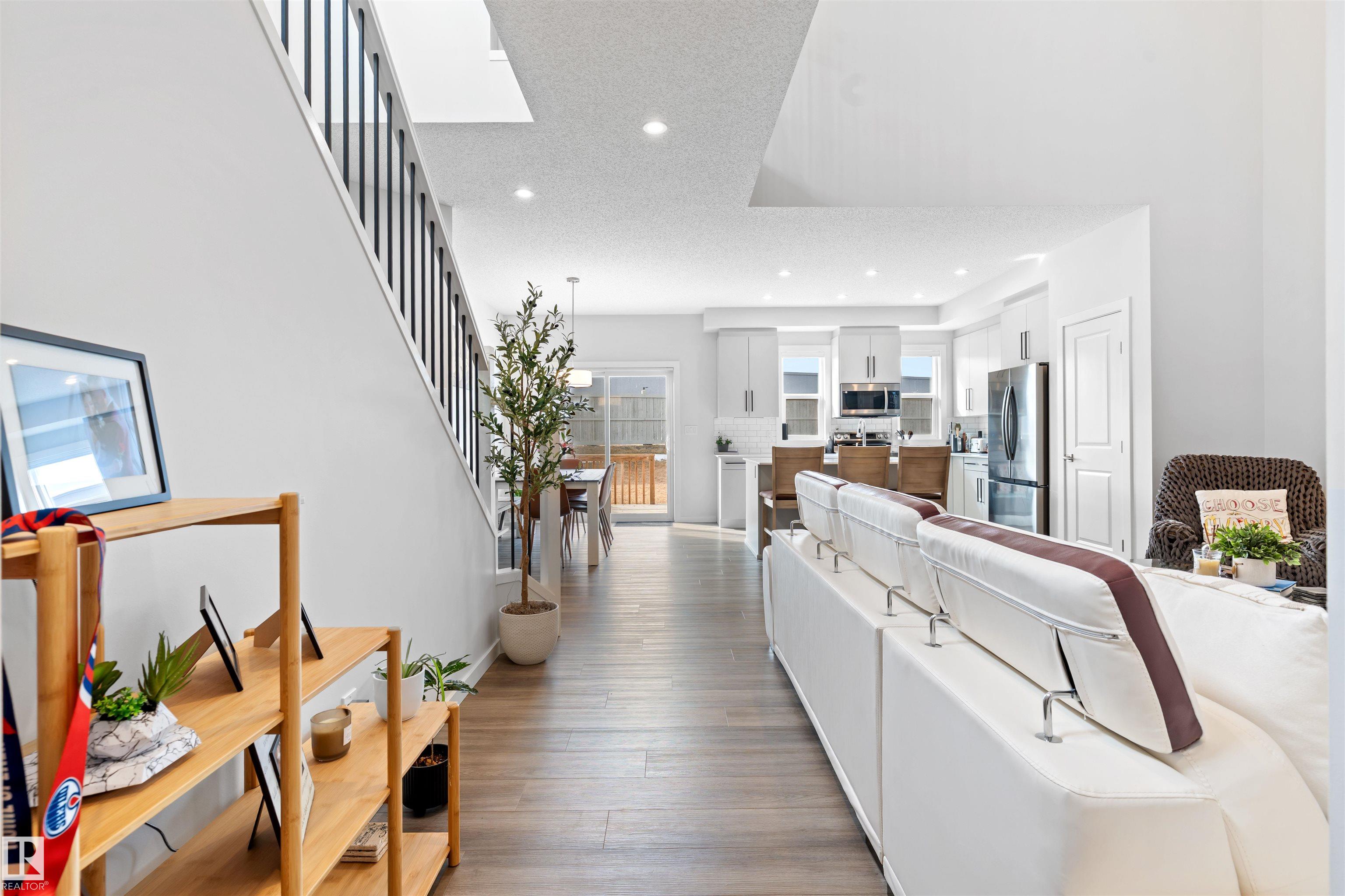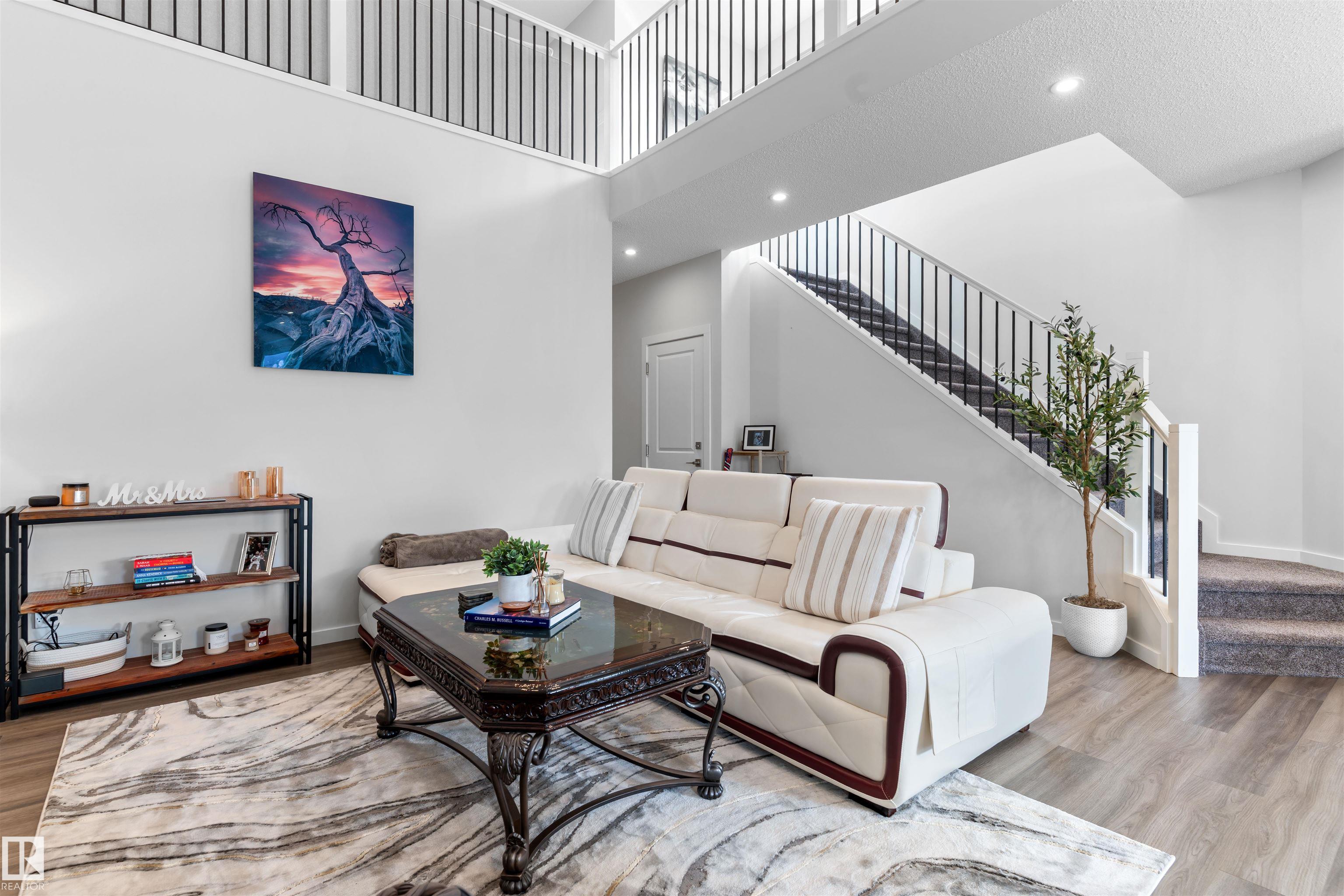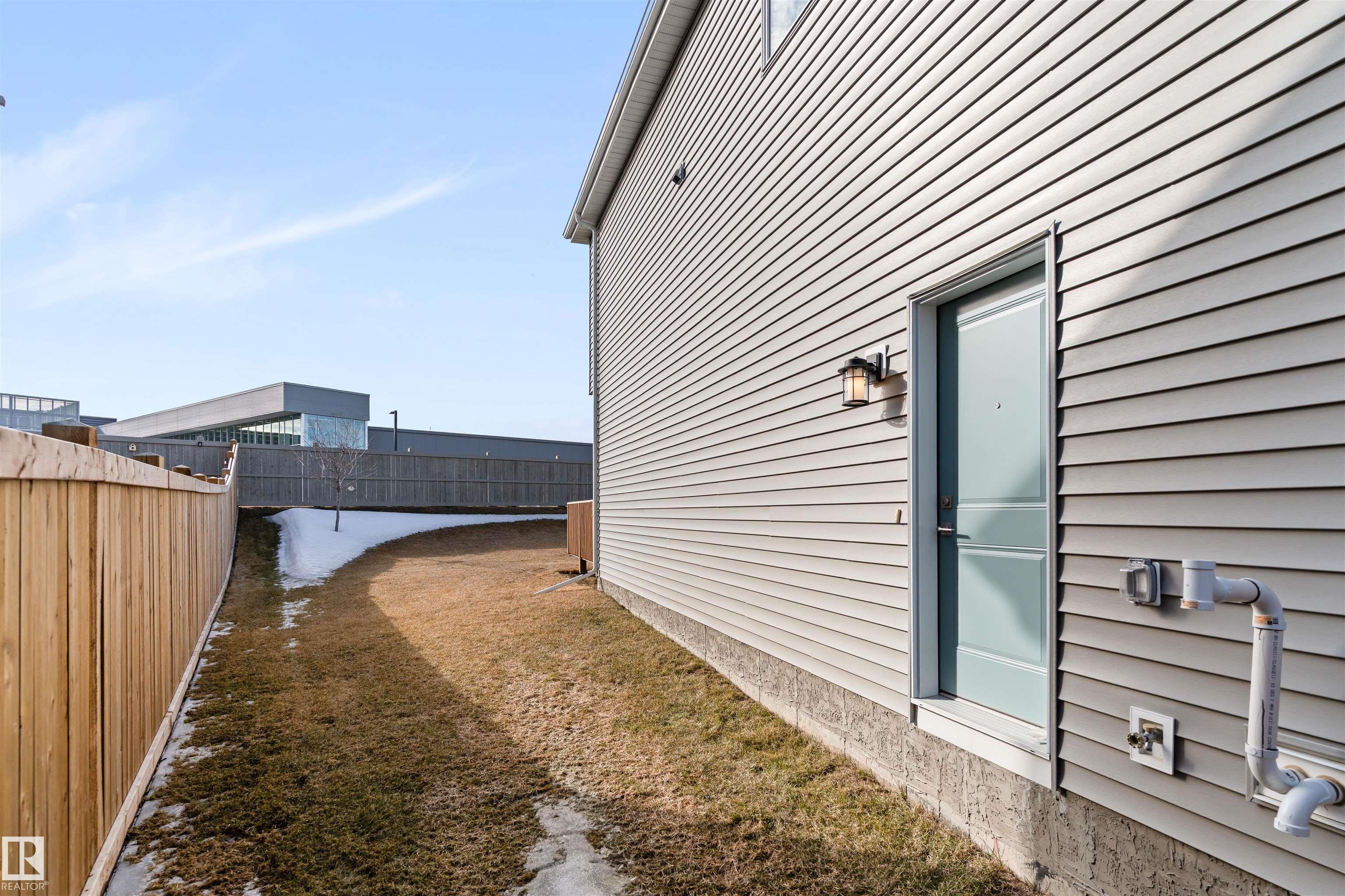 Step into this like-new SHOW HOME QUALITY two-storey residence, built by Bedrock Homes, and experience exceptional quality throughout. This bright, move-in-ready home offers 2,068 sqft with impeccable finishes, including luxury vinyl plank flooring and LED pot lights. The main floor features soaring 9? ceilings, an open-to-below great room w/ a cozy fireplace, and a convenient main-floor den/office & bath. The gourmet kitchen shines with quartz countertops, an upgraded backsplash, 41? cabinetry, and Samsung stainless steel appliances. Upstairs you?ll find three generous bedrooms, a bonus room, a primary ensuite with dual sinks, upstairs laundry & a smart home package. Set on a RARE OVERSIZED PIE-SHAPED LOT (7,844 sqft) for maximum space & privacy. The SEPARATE SIDE ENTRANCE is ideal for a future legal basement suite w/ HRV unit. The spacious 18? x 22? attached double garage completes the package. Superb location! Nearby to K-9 & high schools, arena, parks, shopping, golf course, and easy access to HWY 16.