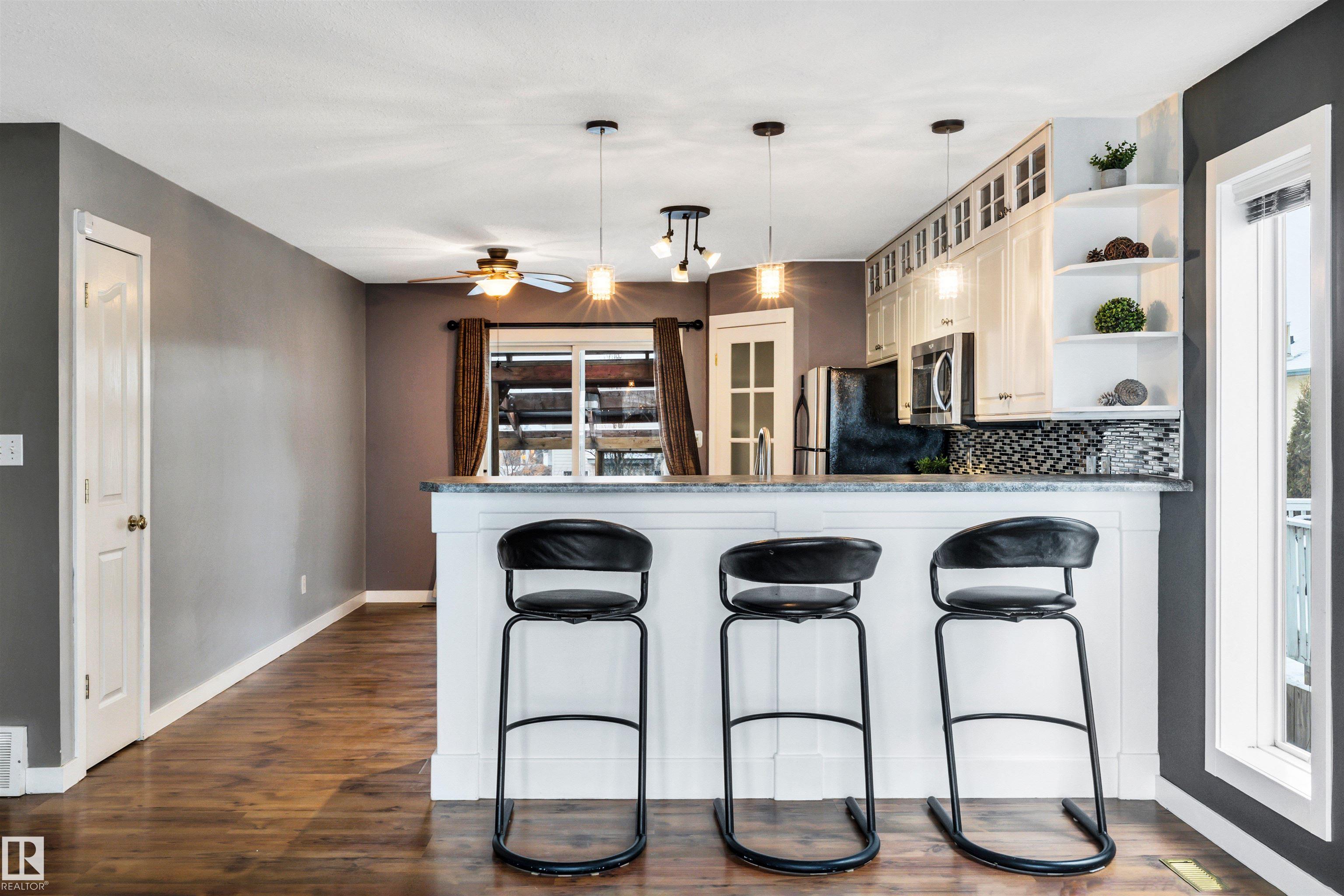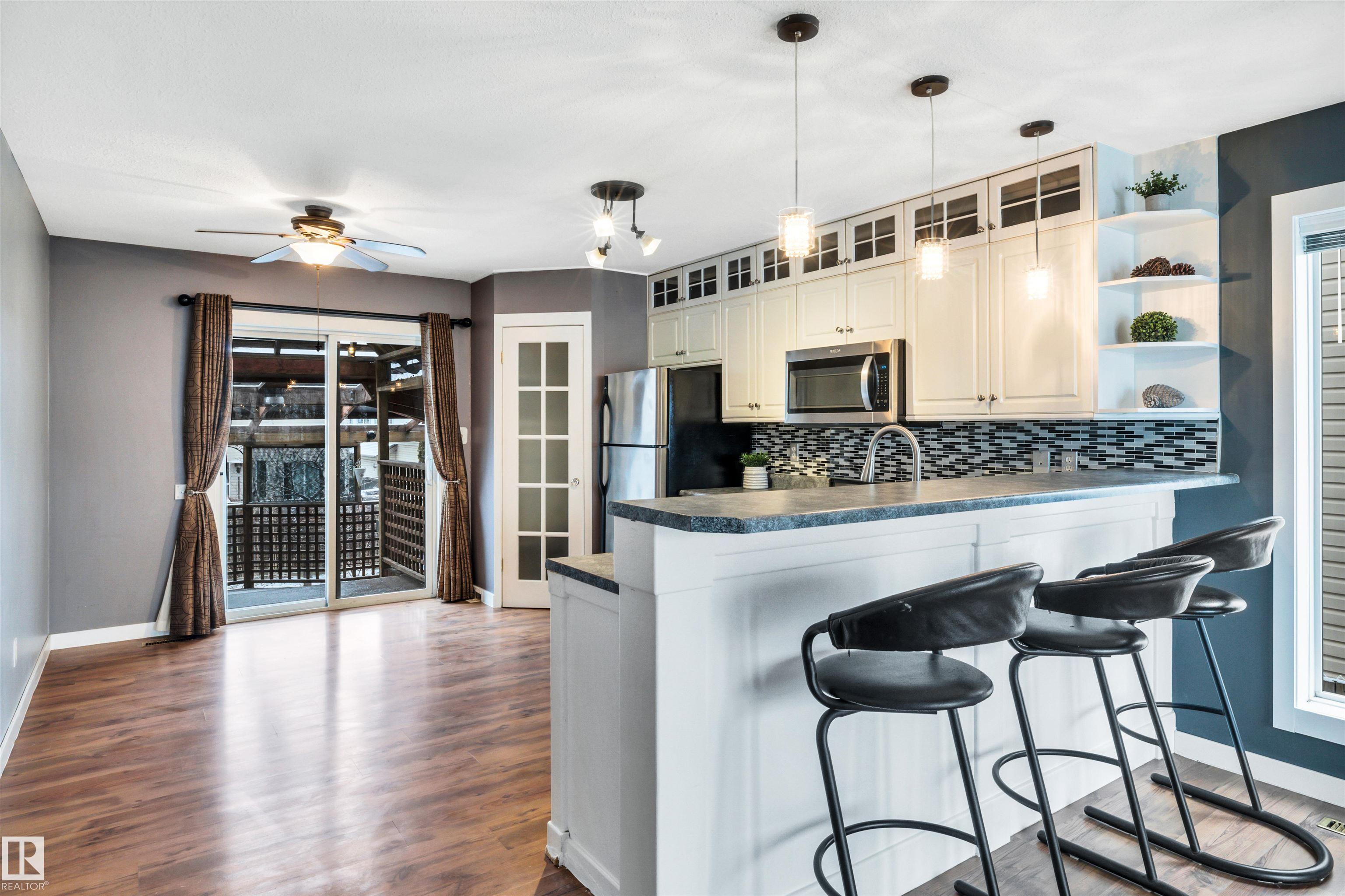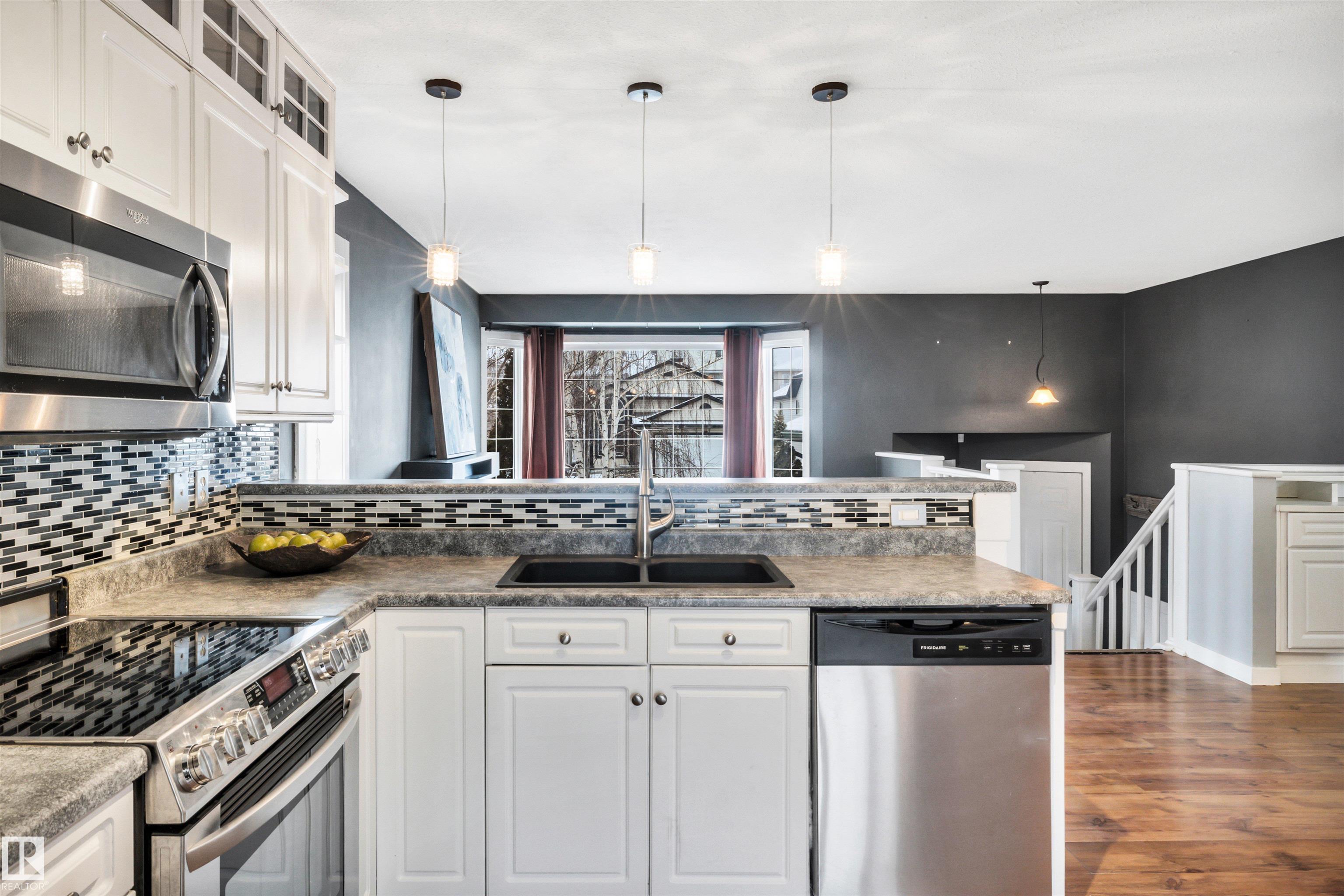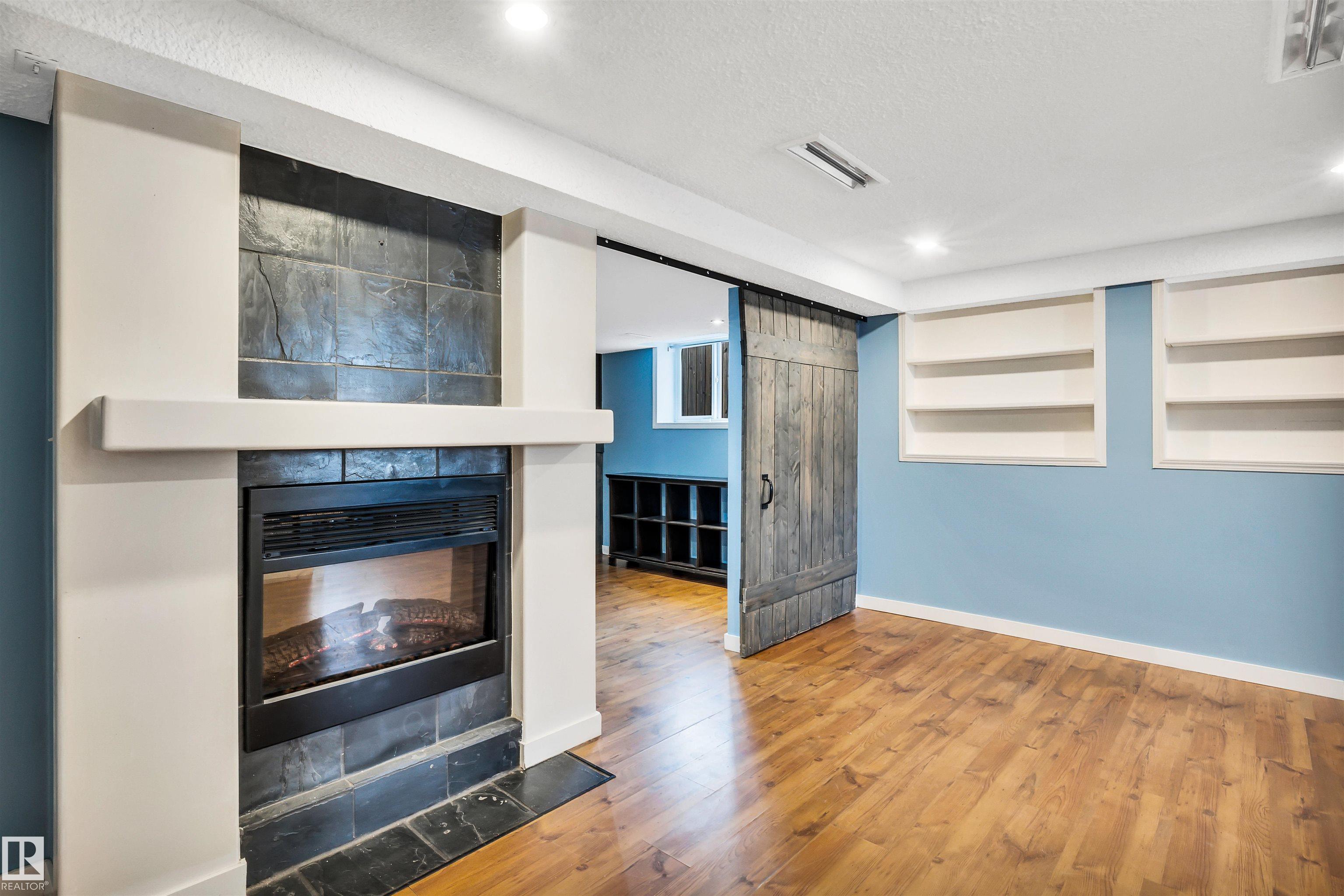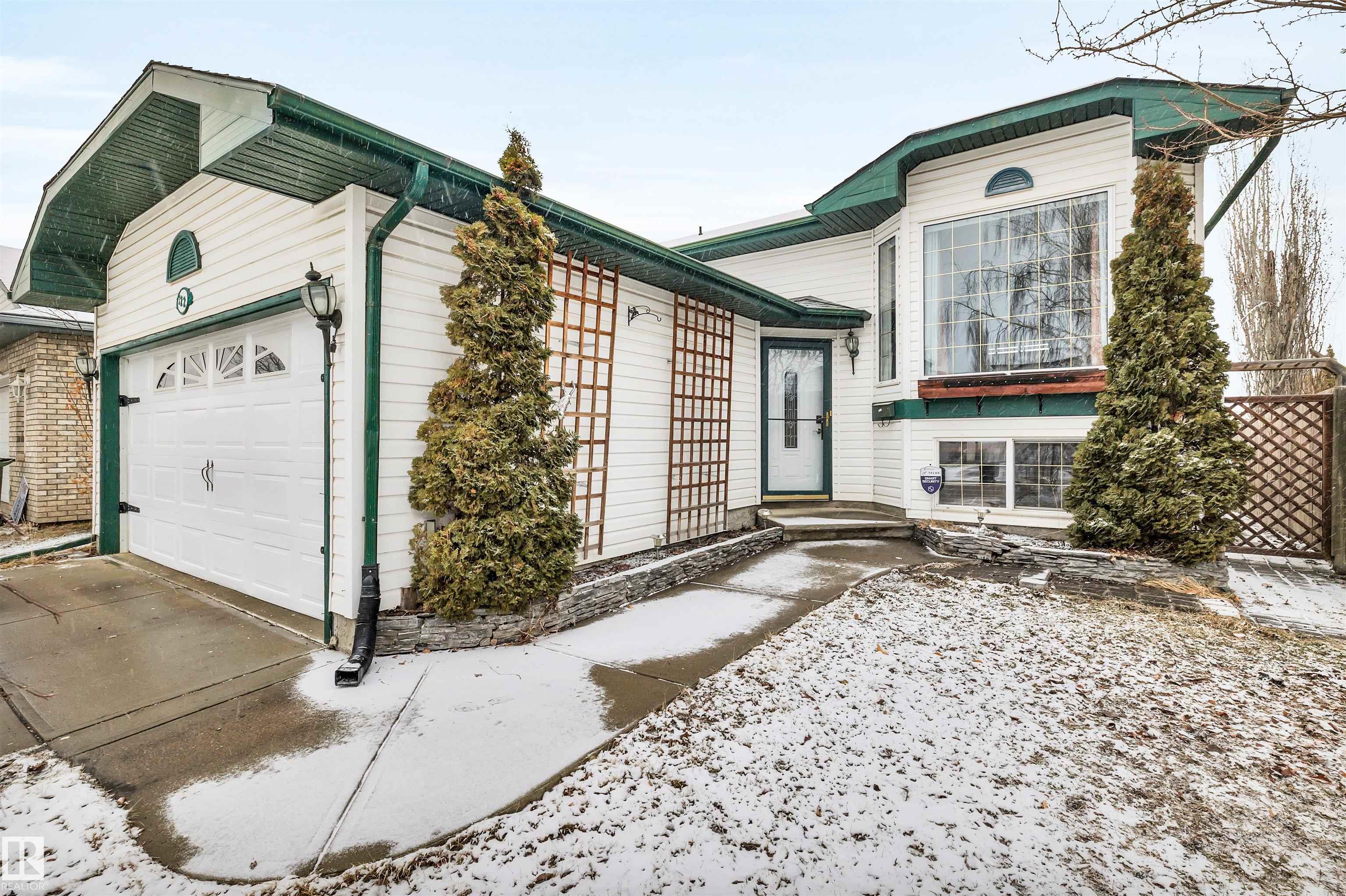 Beautiful bi-level home in sought-after Wild Rose! This well-maintained gem offers 4 bedrooms and 2 full bathrooms, perfect for families. A large foyer welcomes you with convenient shoe storage bench and direct access to the double attached garage. Open concept main floor with large living room featuring an electric fireplace and classic kitchen with plenty of white cabinetry, stainless steel appliances, breakfast bar, and a spacious pantry with shelving and drawers. The primary bedroom includes a walk-in closet and access to a generous 4-piece bathroom with a linen closet. Enjoy the fully finished basement with another fireplace & barn door to flex space which could be a bedroom, den, second dining area, etc. Built-in shelving and cupboards throughout the home. Step outside to a tiered deck complete with a swing?ideal for relaxing or entertaining. Located within walking distance to schools, parks, and trails, with easy access to recreation centres, shopping, dining, Whitemud, and Henday. A true gem!