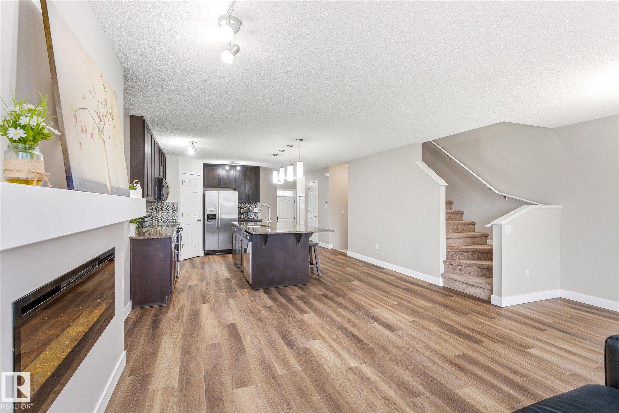 Beautifully maintained open-concept half duplex in desirable Chappelle Gardens, offering modern comfort and exceptional privacy. Backing directly onto a walking trail, this home features a west-facing backyard offering abundant natural light and no close rear neighbours. Recent upgrades include new vinyl plank flooring on the main floor (2026) and a new microwave hood fan (2026). The bright and inviting main level showcases a spacious living room and a stylish kitchen with granite countertops, a large island, upgraded cabinetry, and a convenient 2-piece bathroom. Upstairs offers a versatile bonus room, 2 spacious bedrooms, and a stunning primary suite complete with a large walk-in closet and a luxurious ensuite featuring dual sinks and a walk-in shower. Perfectly designed for comfortable family living, this home is ideally located close to parks, shopping, restaurants, and all everyday amenities.